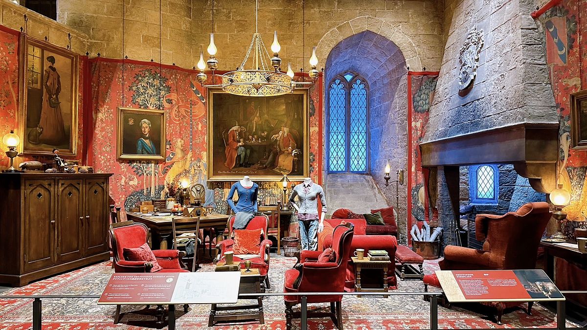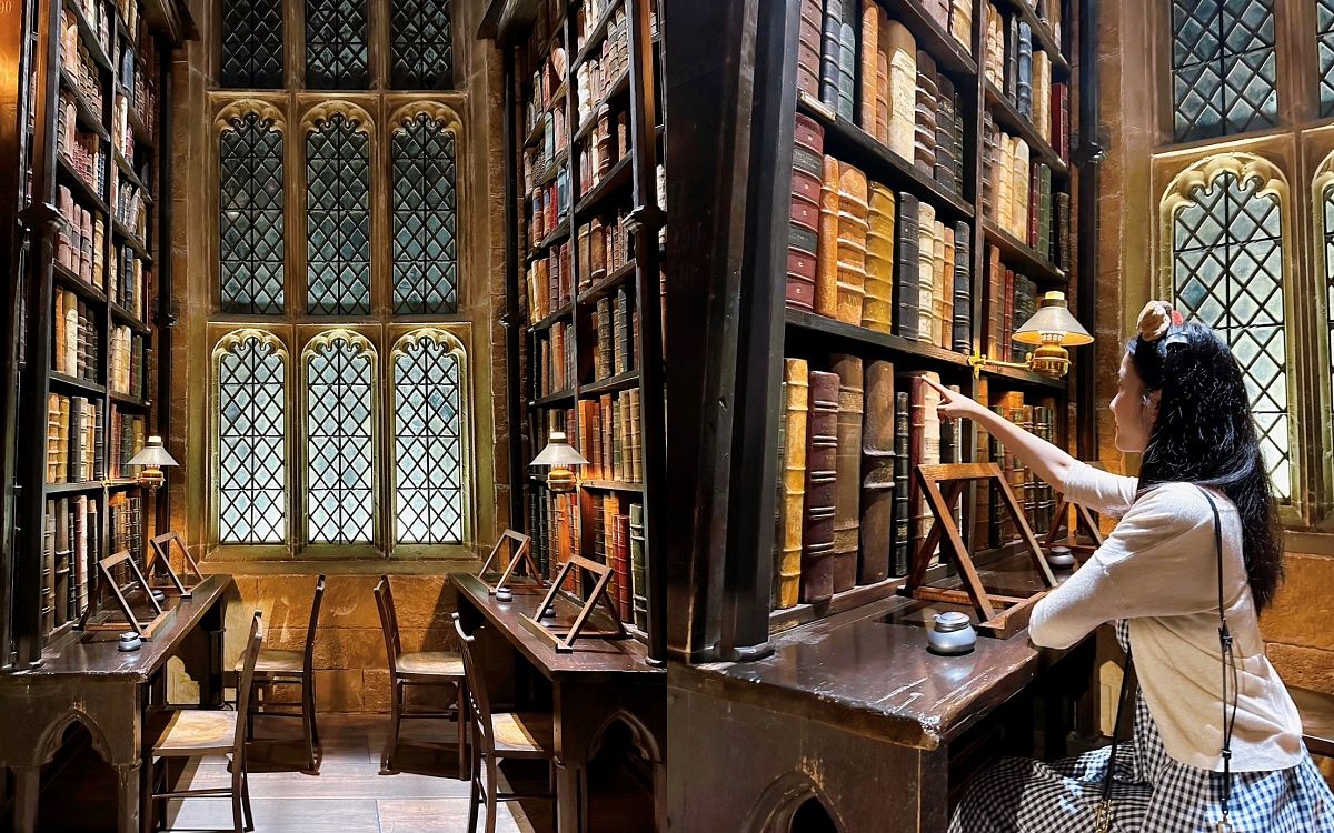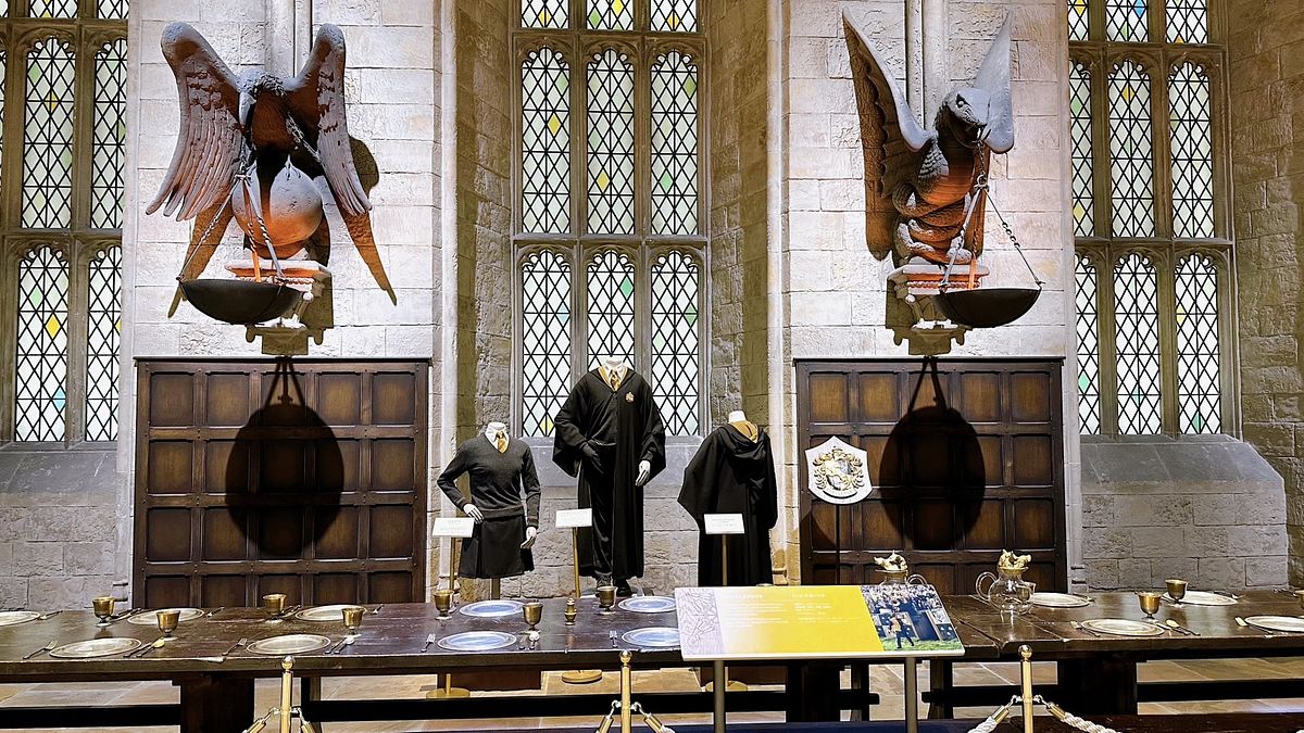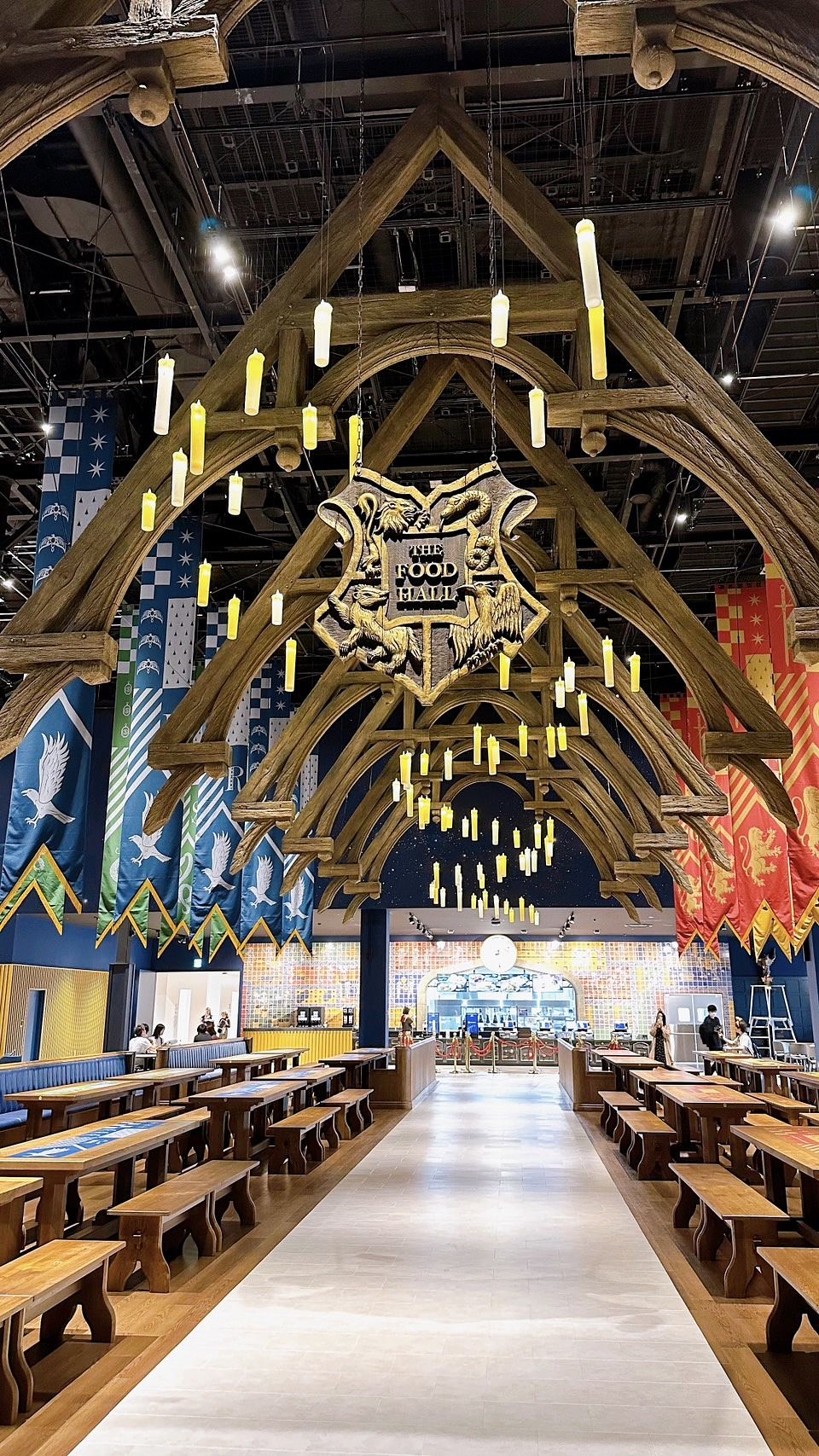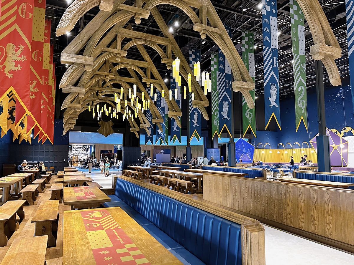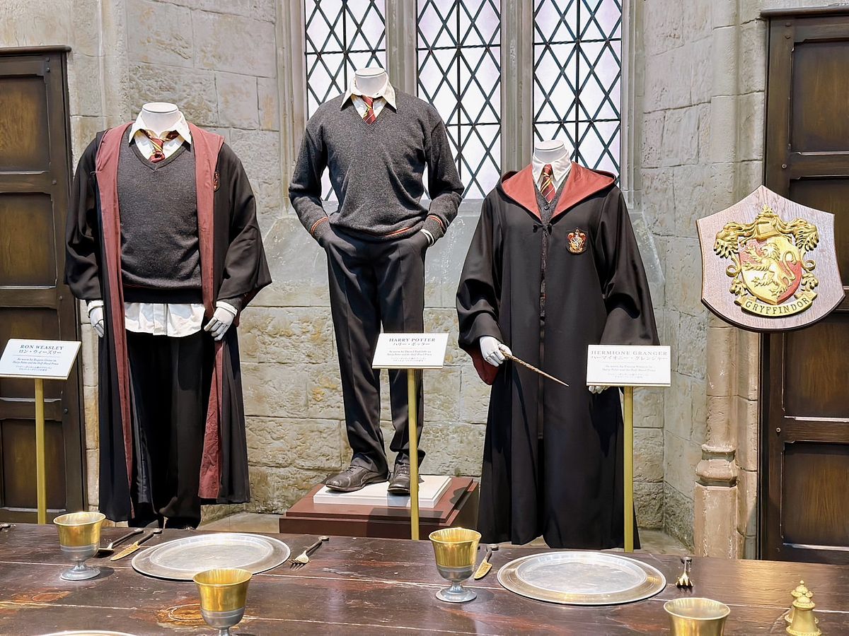 仿照著名的牛津大學基督教會學院人民大會堂建造的霍格華茲學院大廳,瞬間帶領大家進入霍格華茲學院的世界。經典的用餐長桌展示了四個學院的位置,並且還有各個學院的服裝,大廳最前方還有鄧不利多與麥教授等人,情境還原得很徹底!