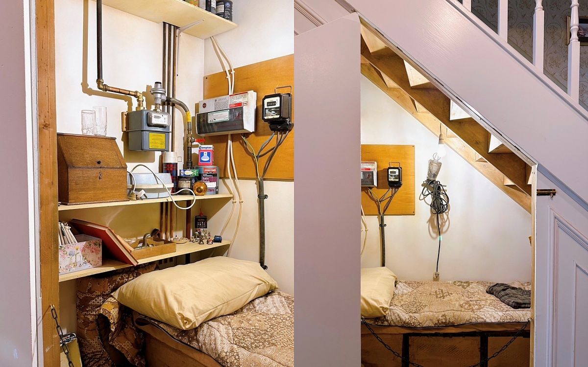 哈利的姨丈—威農·德思禮一家人的家,一進門就彎進樓梯下的小儲物間,便是哈利的房間,真的又窄又小!