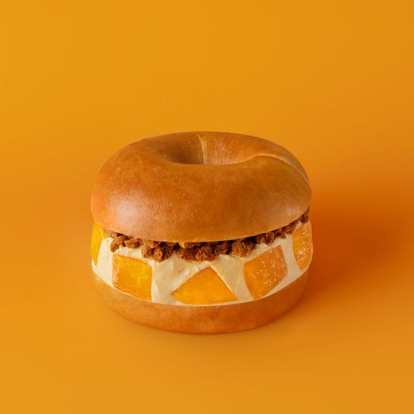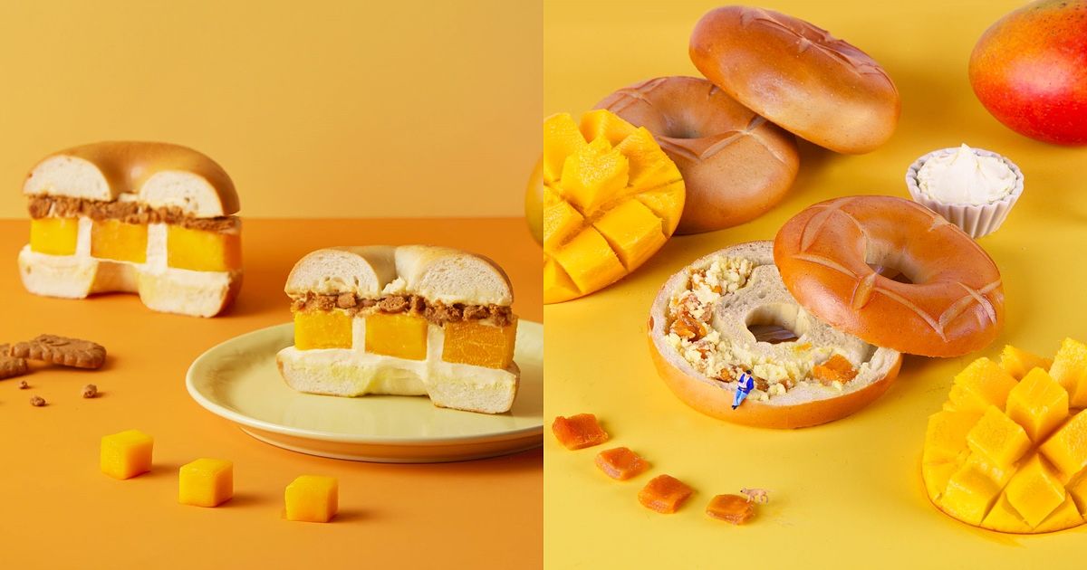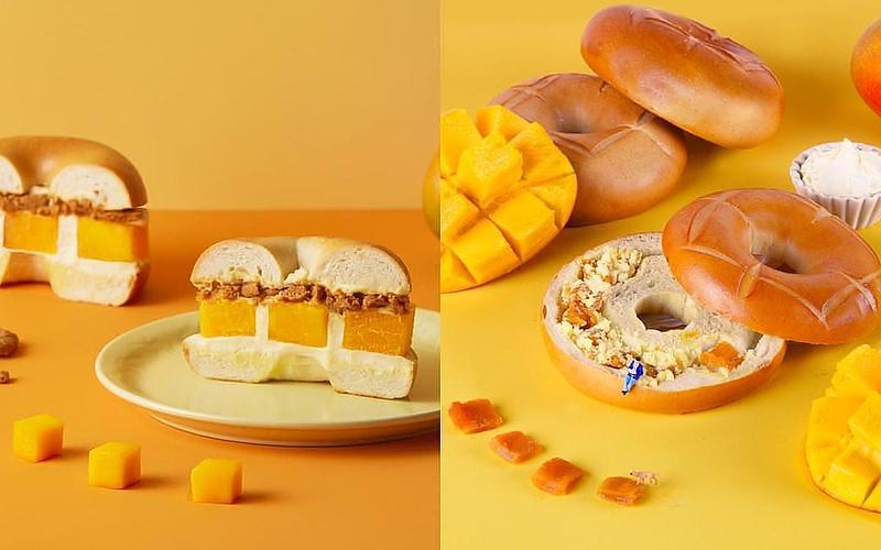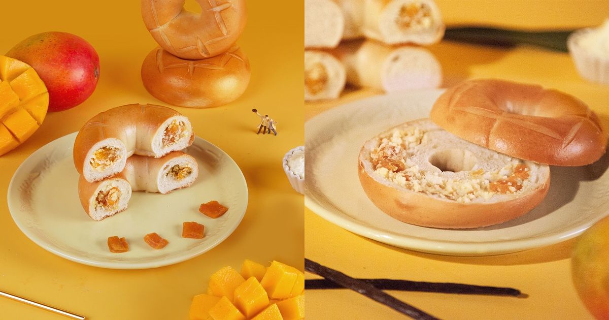 大塊新鮮芒果X奶油乳酪抹醬!《好丘》芒果太郎厚醬貝果新登場,裡面還有焦糖餅乾碎粒!