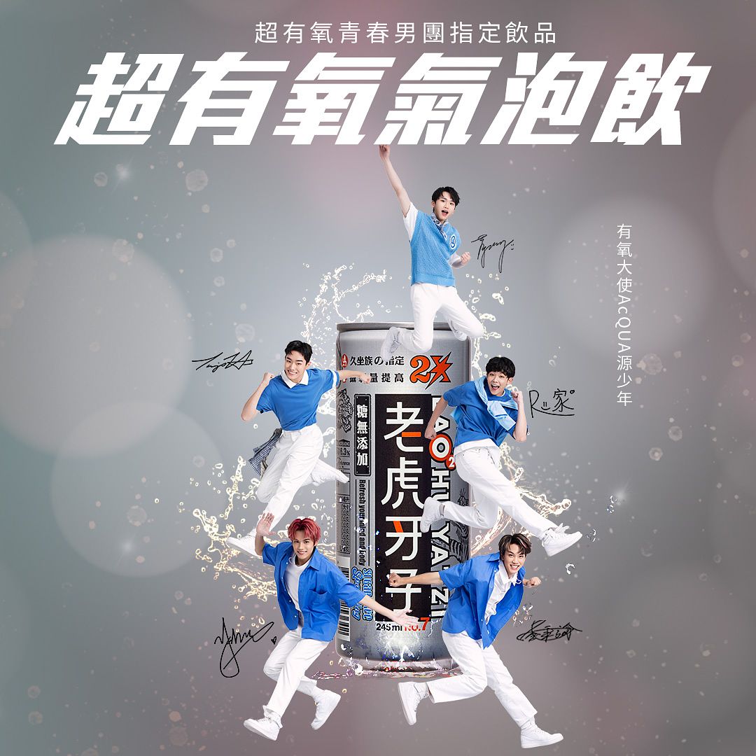 圖片來源:老虎牙子堪稱台灣十大飲料長青品牌的老虎牙子,為了喚起30年老虎粉回歸,帶動新世代年輕老虎粉加入,今年邀請超有氧青春男團AcQUA源少年擔任品牌有氧大使。由李秉諭(貢丸)、黃莑茗、林毓家、須弘道、盧佾暘所組成,成員平均年齡18歲,唱跳能力精湛,各種音樂風格都能完美詮釋,吸引廣大的粉絲們熱情支持。源少年形象清新良好,挾帶著超高人氣的他們,受到各大品牌的青睞,彩妝、保養品、飲品、3C產品等商務合作、演出合作邀約不斷。知名有氧飲料品牌「老虎牙子」也相中了源少年充滿著活力元氣、清新正能量的形象,與品牌想傳達的隨時有效補氧、補充能量的理念不謀而合,一喝完後就能獲得源源不絕的元氣繼續完成事情,因此特別邀請他們合作,擔任有氧大使。一聽到這項品牌合作的消息,成員們紛紛表示開心,從小跟著爸爸一起喝老虎牙子,有著許多共同的回憶。