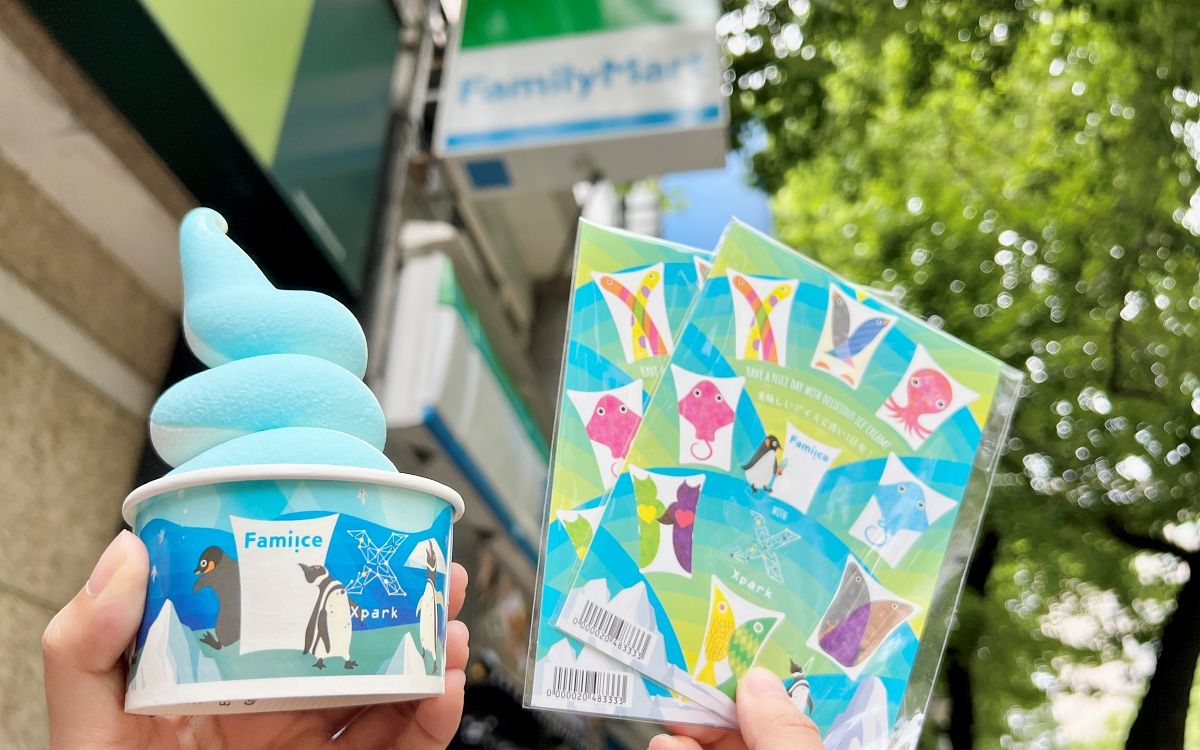 圖片來源:全家便利商Fami!ce「嗨嗨蘇打」霜淇淋將日本夏日祭典中傳統飲品「冰淇淋蘇打」製成蘇打汽水風味霜淇淋,添加台灣在地檸檬原汁平衡酸甜味道,並增加雪酪口感,品嚐起來清爽不膩口;綜合口味則推薦搭配小農牛奶霜淇淋,嚴選台灣在地小農牛奶100%生乳,更榮獲2023年Monde Selection(世界品質評鑑大賞)金獎,與「嗨嗨蘇打」完美融合,滑順濃香再提升。不僅口味特殊好吃,在視覺上也同樣吸睛,除超夢幻霜淇淋配色呈現海洋的湛藍與浪花的白,「全家」更聯手同樣具有日本DNA的Xpark,與其日本首席插畫家合作,運用海洋元素量身打造限量聯名霜淇淋紙杯與紙套,另6/5起凡消費者購買Xpark聯名霜淇淋,即可免費獲得為Fami!ce獨家設計聯名貼紙,限量20萬張,超可愛必收!