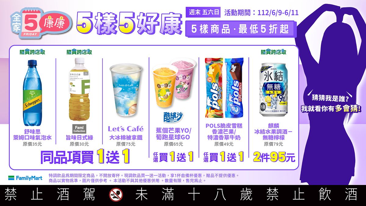 週末最期待的康康五別錯過!「全家」從6/9~6/11推出7樣買1送1的商品,包含夏天必喝的水果風味酷繽沙-「萄跑星球GO酷繽沙」及「蕉個芒果YO酷繽沙」,前者為濃郁葡萄牛奶風味搭配寒天晶球,後者以芒果牛奶結合香蕉風味茶凍,創新組合帶來最特別的療癒感受,另外還有Let’ s Café大杯棉被拿鐵、FamiCollection旨味日式綠、舒味思萊姆口味氣泡水、POLS脆皮雪糕(香濃芒果、特濃香草牛奶)皆享有買1送1優惠,最後想要假日小酌一下,也有麒麟冰結水果調酒-無糖檸檬口味享2件95元優惠,「全家」與消費者一起開心過周末