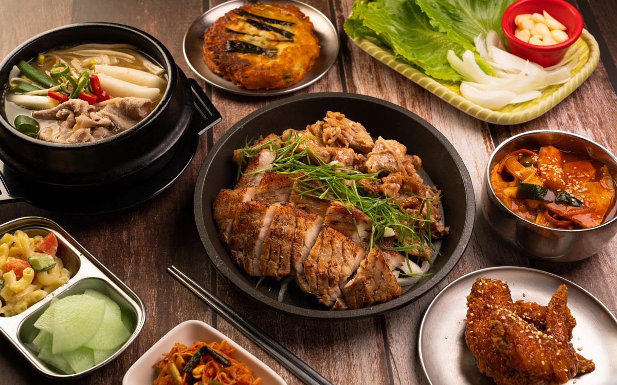 除了肉品外,許多人最愛的韓式鍋物系列也全新登場,《豬肉年糕鍋套餐》、 《水烤牛肉鍋套餐》和《泡菜豬肉鍋套餐》等,多款韓式鍋物認捐挑選,鍋物套餐價格一樣為 240元起,而最受許多上班族喜愛的韓式小點也不容缺席,如《海鮮煎餅》、《韓式辣雞翅》和《辣炒年糕》售價皆為 90元,更以精緻的迷你size份量噴香上桌,讓單人或人數不多的團體消費者,也能夠吃的剛剛好、吃的意猶未盡。