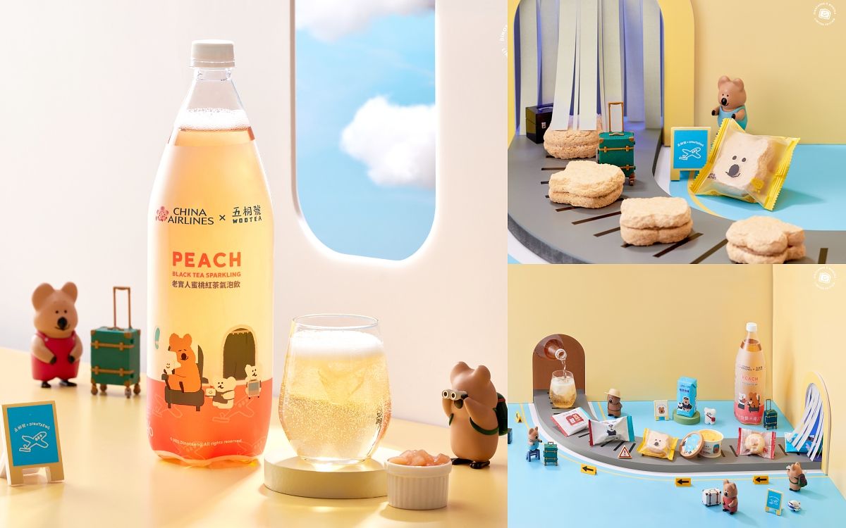 手搖飲是現代台灣人生活中不可或缺的一部分,龐大的市場紅遍全球,造就堪稱「台灣之光」的手搖飲文化。近期炙手可熱的手搖品牌「五桐號」將首度躍上高空,聯手中華航空以「茶」為主題,合作推出一系列「機上餐飲」,自七月一日起依據不同艙等及長、短程航線規劃出馬卡龍、達克瓦茲、瑪德蓮、冰淇淋、莎布蕾、蜜桃紅茶氣泡飲、桂花烏龍等多種甜點與機上飲品,讓經濟艙、豪華經濟艙及商務艙的所有旅客,都有機會在飛機上品嚐最能代表台灣文化的「茶」味甜點。此外,五桐號最具代表性的聯名首推韓國文青品牌「DinoTaeng」,這次也將一同登上華航,無論是在外包裝或是甜點造型都加入「Quokka短尾矮袋鼠」的爆萌元素。韓國作者DinoTaeng更為這次合作繪製一系列專屬插圖,像Quokka化身專業機長、BoBo則是熱心空服人員,營造出可愛愉悅的用餐氛圍,讓旅客在機上也能盡情打卡曬照。