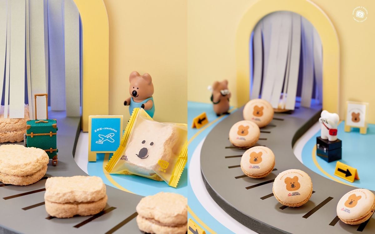 這次五桐號除了為華航打造獨家限定甜點及飲品,更是將超人氣的DinoTaeng一起帶上華航,在甜品造型及外包裝上都添加了矮袋鼠療癒元素,勢必會在IG上掀起洗版熱潮。