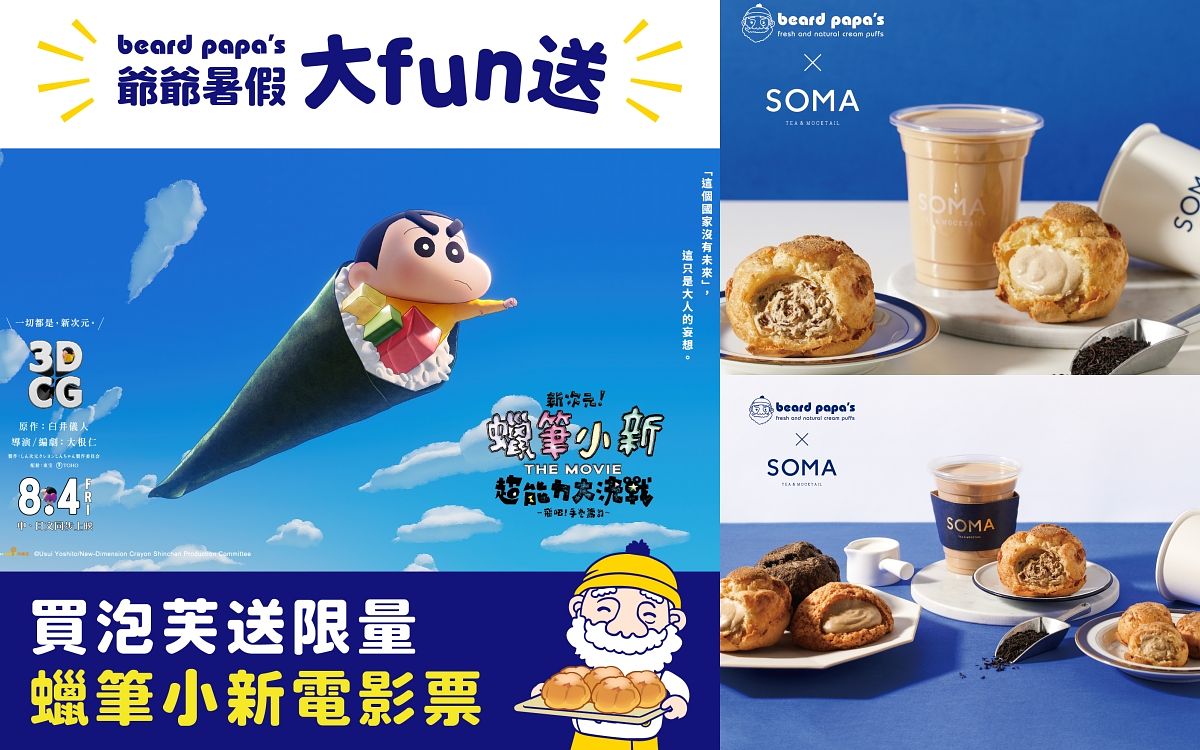 圖片來源:beard papa's暑假大fun送!買泡芙送超人氣蠟筆小新電影票!7月初起beard papa’s將舉辦贈電影票活動,有機會獲得「新次元!蠟筆小新電影超能力大決戰~飛吧!手卷壽司」電影優惠票券(不累贈),數量有限贈完為止!粉絲們趕快把握機會,密切留意粉絲專頁最新訊息!