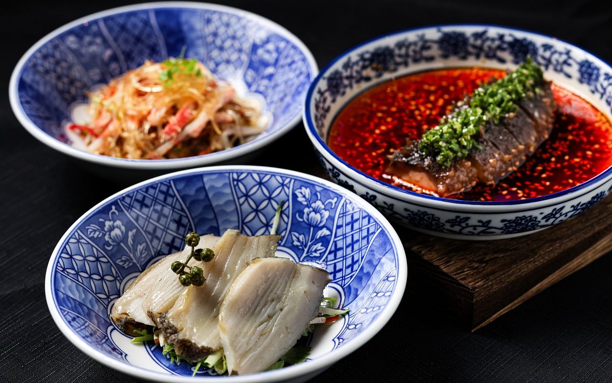 圖片來源:晶華酒店琳瑯滿目的菜色選項中,鄔海明主廚首推潮式打冷單元中的潮式凍馬友,這道菜做工繁複費時,成品魚身方正細緻,入口能感受到高雅的鮮香,搭配潮式打冷必備的普寧豆醬一同食用,層次風味更加提升。做法是先將馬友魚泡漬鹽水去腥,入鍋蒸熟後再浸入滷水增味,之後再放入冰箱冷藏讓魚肉產生「凍膜」,出菜前需剔骨去刺、以尺丈量切出帶著魚皮的長方形魚塊,再連著魚頭和魚尾一同盛盤上桌。另一道潮式滷水鵝是選用來自屏東的黑鵝,將其洗淨川燙後放入熱鍋中與陳皮、香葉、八角、片糖慢燉近80分鐘而成,切片上桌後淋上以燉煮鵝的醬汁與老滷慢熬濃縮成的秘製醬汁,入口皮香肉滑、醬香四溢。冷前菜類則是以開胃、清爽、精緻為主軸,潮州攬菜鮮筍是廣東潮汕地區的風味小菜,取欖菜的鹹香與彎角綠竹筍的甜脆,口感清爽、滋味豐富。老陳醋浸花生的重點是在浸泡帶皮花生的老陳醋,主廚以尾韻帶甘的山西老醋和酸香味較重的廣東陳醋調和而成,花生入口爽脆、絕妙的醋酸美味令人胃口大開。
