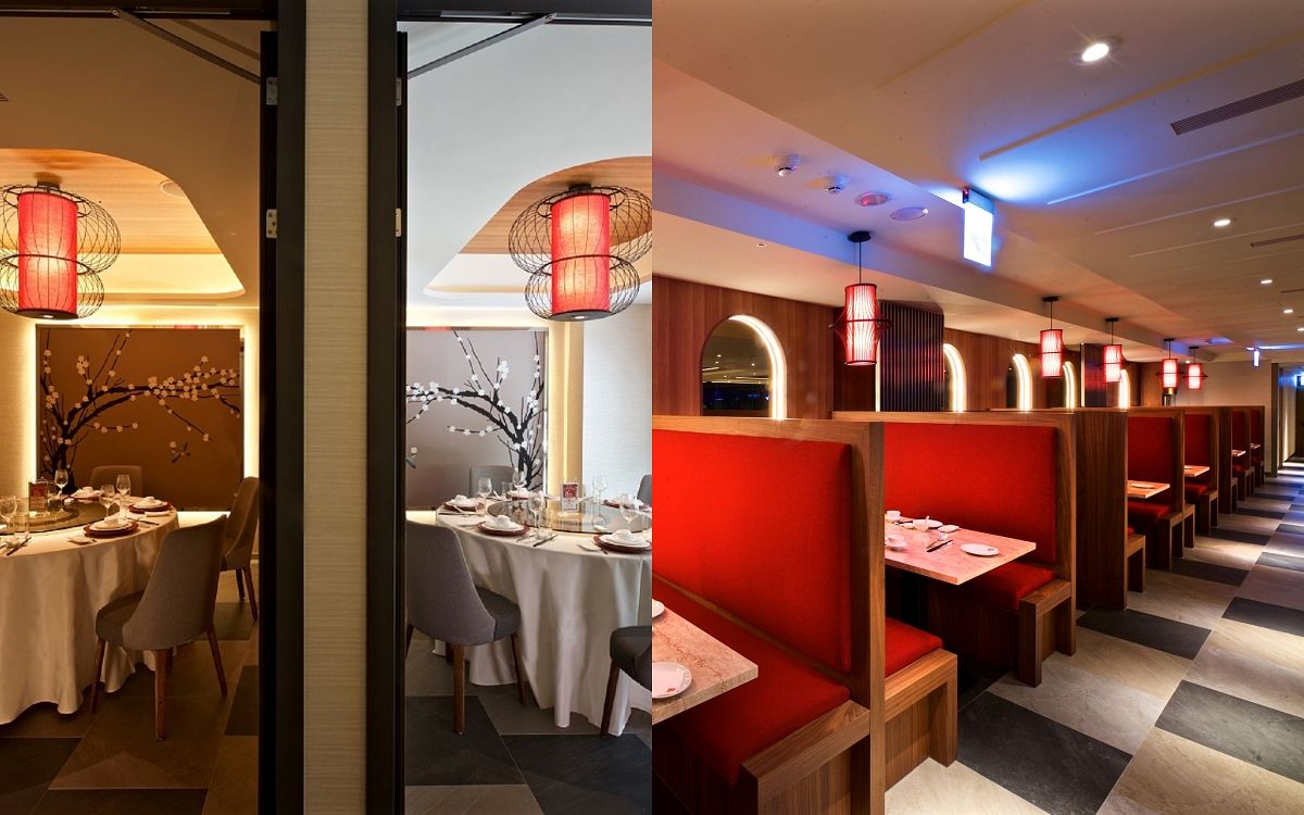 甫踏入餐廳即可瞅見「神旺大飯店」金色門牌高掛,象徵「神旺潮品集.忠孝店」承先啟後的寓意及期許。為使貴賓自在用餐,客席區設立288席座位,以小家庭、親友聚餐4-6人桌為主,空間舒適、不擁擠。為迎合現代人小型宴會及尾牙春酒需求,餐廳特設9間可分別容納6-28人的獨立包廂、宴席區容納人數為30-80人。以「雲卷峰巒」意境為餐廳主體設計,整體貫穿沉穩溫暖的木質色調,搭配中式意象的紅色燈籠、流線型的黑色線條延續性美學、典雅的裝飾物,讓每個角落皆是風景、每個轉身都能瞟見復刻神旺大飯店時期的新東方古典風華。