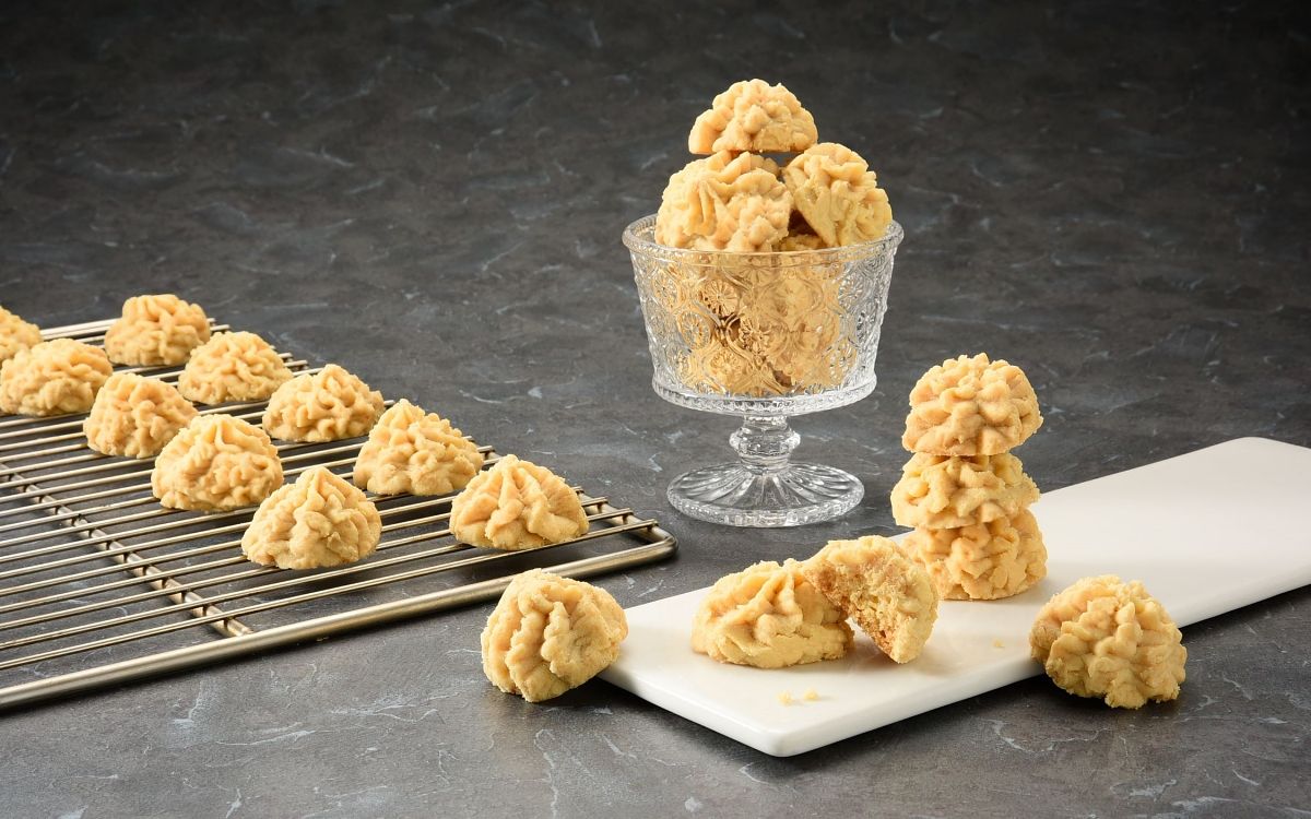 圖片來源:亞尼克每一顆盛開如花的曲奇花餅由師傅嫻熟手勁擠畫而成,經過低溫慢烤,濃縮所有頂級食材的魅力,讓經過設計的餅體厚度在入口剎那,充分感受舌尖跳躍的鹽之花,帶出優雅豐厚的奶油香氣與入口即化的蓬鬆香酥,更嚐得出高級奶油香的餘韻精彩。鹽之花曲奇花餅格外酥鬆且充滿空氣感的秘密,正是加入日本葛粉,獨特的澱粉質,易消化不會造成胃部負擔,也讓曲奇花餅特別嬌弱,好吃到就是愛掉渣的原因。由於純手工製成,「亞尼克鹽之花曲奇花餅」將於8月23日中午12:00起開放網路與門市限量預購,9月5日至9月30日間依消費者指定時間出貨,每盒售價450元。
