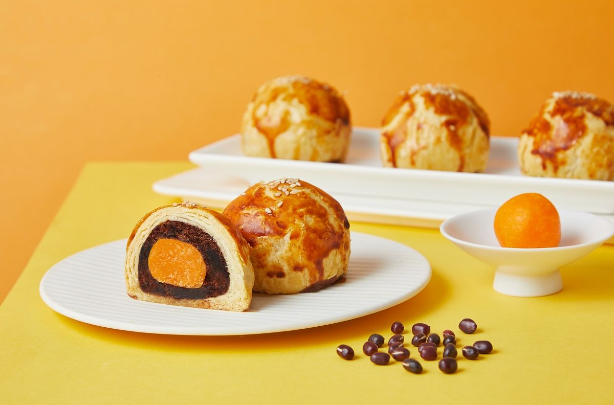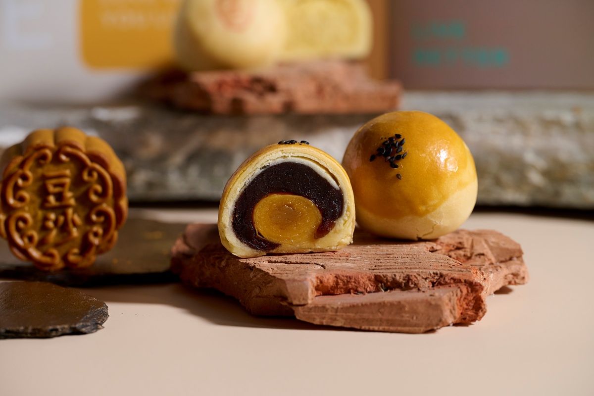 寒舍集團的人氣禮盒「澄月」蛋黃酥禮盒,當中除了蓮蓉蛋黃酥外,還有黑芝麻蛋黃酥與芋香蛋黃酥全新口味亮相。綿軟的白豆沙與手炒黑芝麻餡、綿柔大甲芋頭,以手工揉製薄酥餅皮裹入紅土鹹蛋黃,外皮油亮金黃,色澤飽滿圓潤,傳遞圓滿心意的最佳選擇。