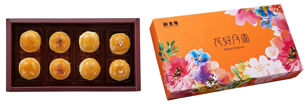 新東陽的「花好月圓1號」當中共有四種口味的蛋黃酥,包含搭配中秋應景的柚香、棗泥、豆沙跟蓮蓉。