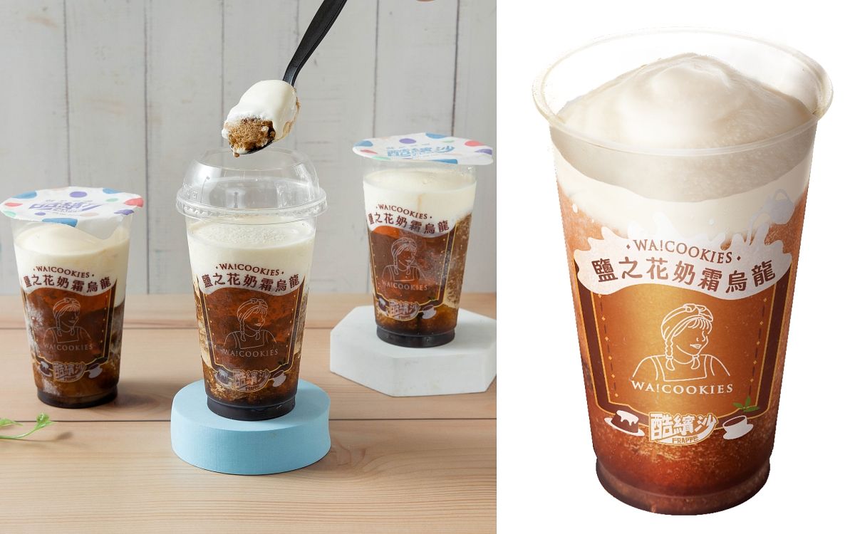 圖片來源:全家不僅如此,「全家」同時也與WA!COOKIES推出「鹽之花奶霜烏龍酷繽沙」,選用台灣四季春烏龍及黃金烏龍茶,拌入荔枝蜜以黃金比例調配而成獨特口味,更添加茶凍提升咀嚼口感,頂部鋪上微鹹起司奶蓋,一杯內含多層次風味,以創新冰品帶來驚奇,是絕對不可錯過的絕佳滋味。