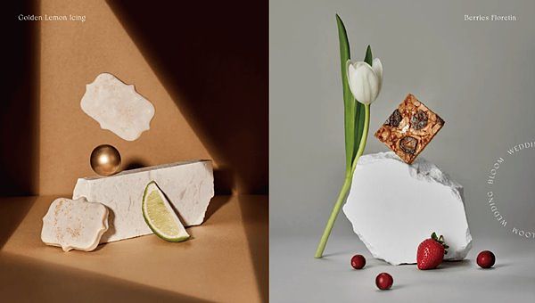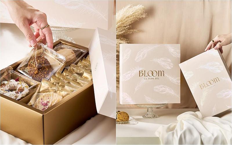 各大論壇PTT、Dcard激推的法式精品喜餅「Bloom wedding」,以花神為靈感,產品結合了花、茶、利口酒入甜點,頂級巧克力、松露、無花果、進口開心果等高級食材,獨家研發多款成熟高級大人味甜點。除了以往的宅配服務,「Bloom wedding台中形象店」今年七月更於台中美術園道商圈盛大開幕,以大理石、米色質調體驗空間,有如精品店時尚質感、浪漫溫暖的氛圍,並規劃專屬包廂讓新人體驗試吃喜餅。為慶祝門市開幕,9月底前新人預約來店體驗、喜餅免費試吃,現場再送一盒「Bloom試吃小禮盒(價值$500)」(試吃體驗須事先預約,名額有限),現場下訂再抽日本來回機票。(*試吃小禮盒參考圖例5)