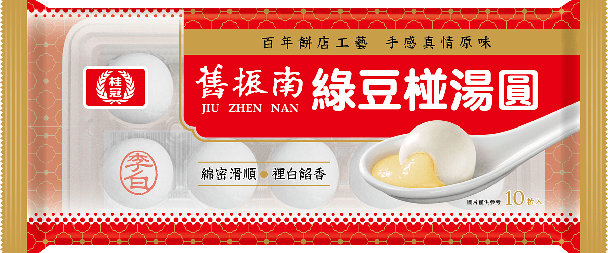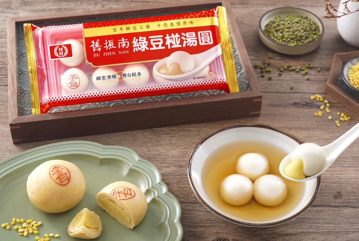 承載台灣人回憶的兩大經典美味,在今年秋天正式相遇,由桂冠湯圓和舊振南餅店攜手合作,隆重推出「桂冠舊振南綠豆椪湯圓」,選用舊振南綿密的李白綠豆椪,與桂冠傳統古法工序製成的湯圓,口感完美的融合,不僅象徵著台灣經典美食文化的結合,更是今年秋季不可錯過的絕佳風味。