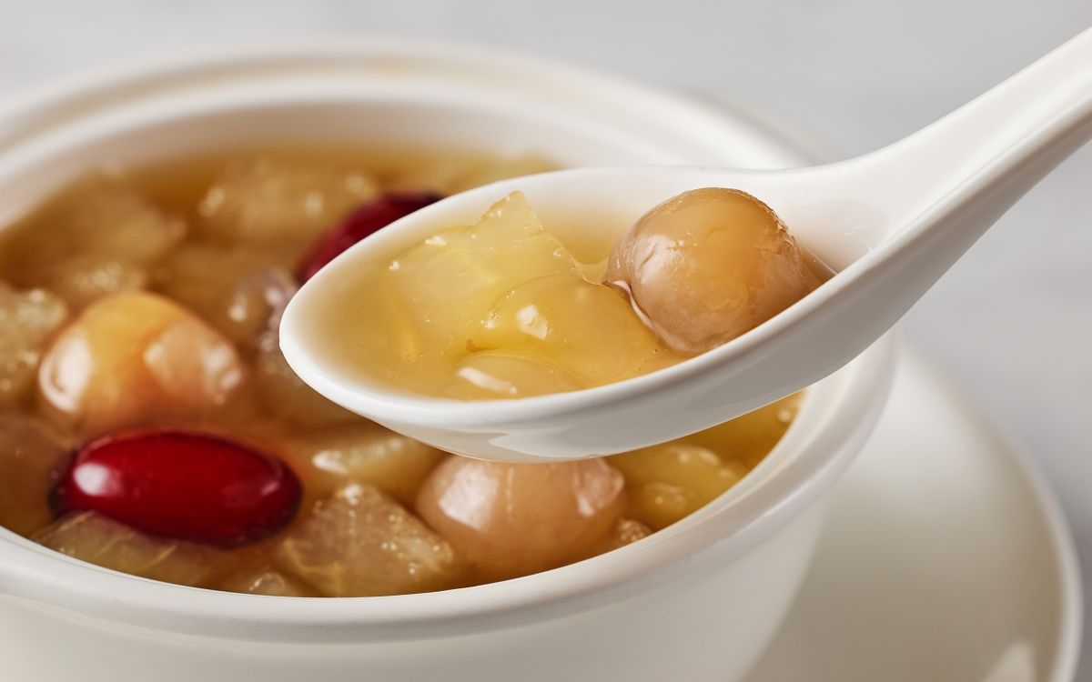 圖片來源:樂天皇朝天氣轉涼,止咳潤肺的「雪蓮子燉桂圓雪梨湯」,則適合各年齡層顧客食用。採用素有「植物膠原蛋白」之稱的雪蓮子,與適口大小的雪梨、桂圓、紅棗一同燉煮,在充滿秋季視覺的琥珀色甜湯裡,帶來香甜滋潤,在飯後來一碗享用,畫下完美舒心的美好用餐體驗。
