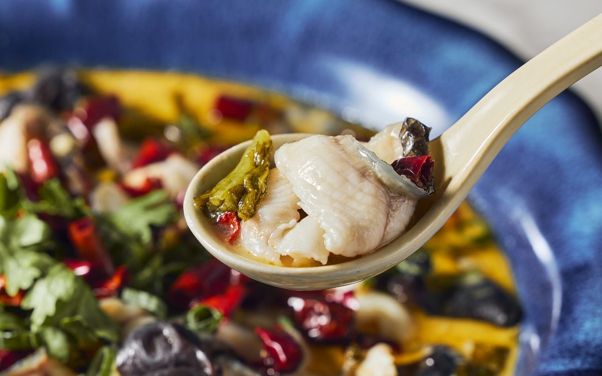 圖片來源:樂天皇朝而「香辣水煮魚」以豆瓣醬、四川花椒等辛香料自製為麻辣醬基底,同樣以樂天皇朝獨家豚骨高湯調和與魚片共煮,出鍋後滾油燙進碗內自然產生豐富辣香,麻辣湯頭溫潤不燥,喜辣客人多以直接喝湯作為對餐點的最高讚美。肉質彈牙帶軟嫩的黑魚魚片,經燙煮至八分熟後濃裹住上乘麻辣湯頭中麻、辣、鮮、香、甘五種滋味,加上黃豆芽、黑木耳與粉絲一同享用,彈香爽脆分明,調味口感及香氣讓人回味無窮。同時搭配本次新開幕,在食材上也做了強力升級。為了講究魚片的鮮美適口,主廚團隊在持續測試各式魚種後,最終採用川菜本色「黑魚」,但嚴選台灣在地養殖,風味更佳。客人可各憑所好,選擇酸香猶潤的「私房酸菜魚」或麻辣鮮香的「香辣水煮魚」,亦特別供應大、小份量,就算人少也能品嚐一吃就上癮的美味。