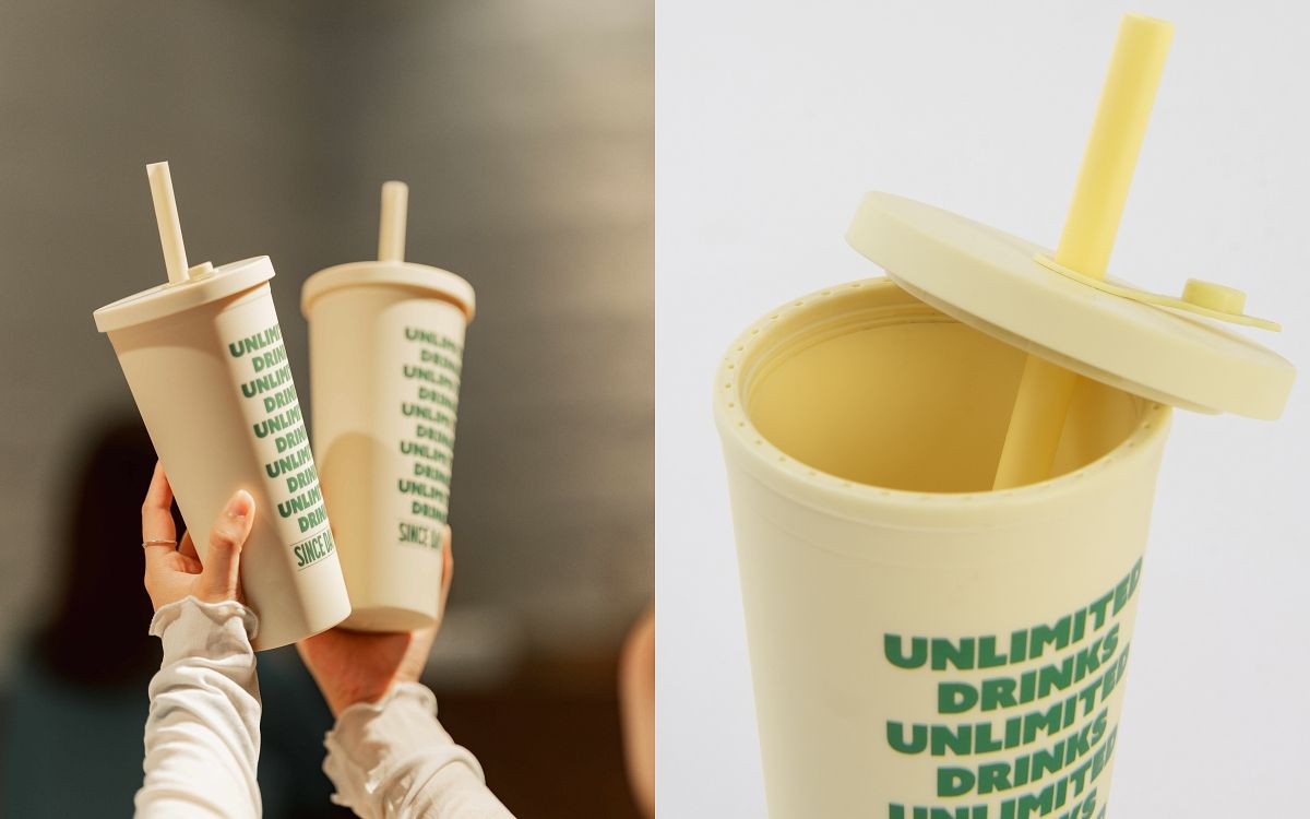 本次貳樓與QUEEN SHOP獨家推出黃綠撞色的「UNLIMITED DRINKS印字環保水杯」,700ml大容量並附有吸管和刷子,可重複清潔使用,印上貳樓標語「無限暢飲」,簡約可愛的設計,不論是日常穿搭或手拿出門都十分百搭,帶你盡情享受在貳樓大口啜飲的快感。