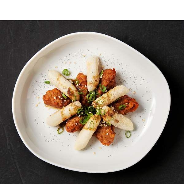 圖片來源:foldie蔬食餐酒館 無肉版的「陳皮怪味雞」,四川經典冷菜怪味雞的變奏,用植物肉做成炸雞搭配酥炸年糕,淋上香麻怪味醬,最後撒上提味的陳皮提味,非常涮嘴讓人無肉也歡。