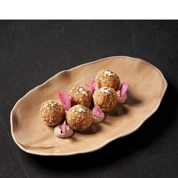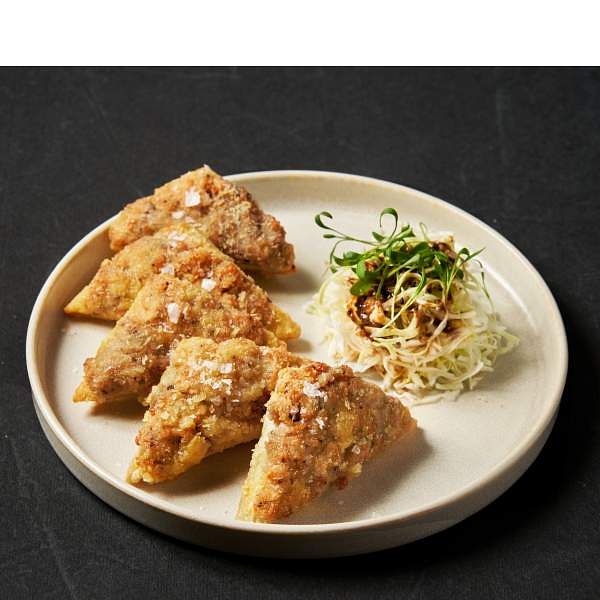 圖片來源:foldie蔬食餐酒館 招牌「松露百花臭豆腐」發想自百花豆腐,把豆腐換成更接地氣且適合餐酒館的臭豆腐,配搭擁有特殊香氣的松露及植物肉末入鍋油炸,酥炸後的臭豆腐有著如日式炸豬排的外型,畫龍點睛的襯上新鮮高麗菜絲與胡麻醬,增添了松露百花臭豆腐層次和風味。