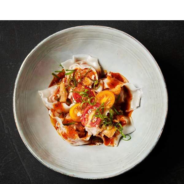 圖片來源:foldie蔬食餐酒館 重口味的「麻辣番茄奶油抄手」翻玩紅油抄手、蕃茄牛肉麵及義大利餃的元素,將番茄與植物肉包進餃子中,淋上麻辣醬、番茄及鮮奶油調和的滑順醬汁,香、辣、麻、甜多層次的口感,翻轉了傳統抄手醬的鹹辣感。