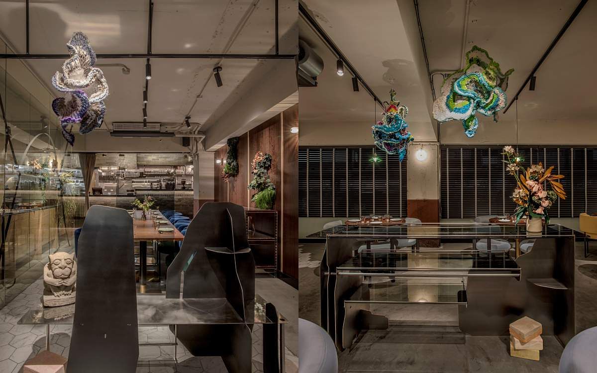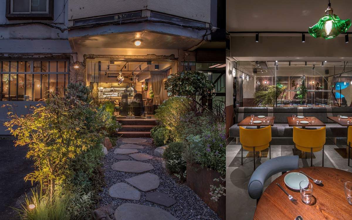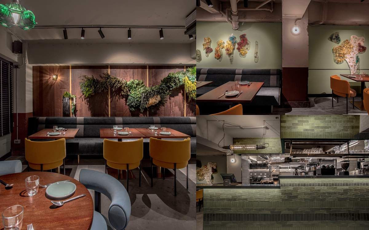 「foldie蔬食餐酒館」位於台北東區巷弄中,有著極為低調且神祕的建築外觀,運用綠、白、灰的色彩呈現森林中的意象,異材質拼接的藝術品呼應菜色上不同菜系融合的創意,在原始自然的環境裡挖掘蔬食帶來的食趣,輕鬆愜意的氛圍下享受餐酒館無拘束的創意