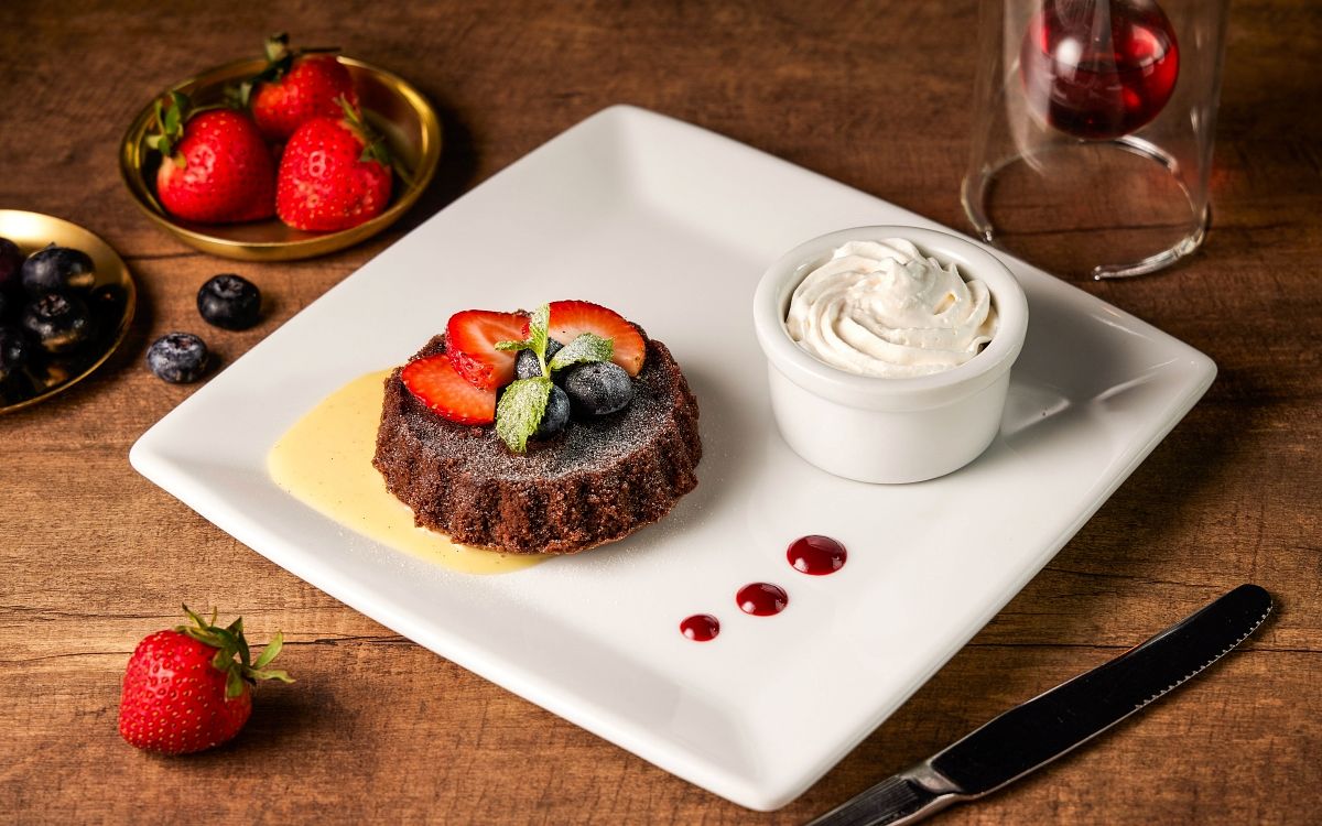 圖片來源:茹絲葵主餐以饕客最為喜愛的美國菲力牛排搭配頂級波士頓龍蝦尾,軟嫩菲力置放於攝氏260度招牌保溫瓷盤,奶油與肉汁滋滋聲響象徵佳餚誕生,肉質緊實的龍蝦尾則搭配檸檬及澄清奶油,感受豐盈海味,佐餐甜點則以巧克力蛋糕搭配巧克力慕斯設計,濃郁甘納許包裹於蛋糕體中,妝點新鮮莓果、覆盆子果醬及香草甜醬,享受不同風味層次;巧克力慕斯質地滑順軟綿,帶點苦甜滋味的巧克力搭配輕盈鮮奶油,令人愛不釋手,讓甜蜜與美好滋味於用餐結尾時仍縈繞心頭。