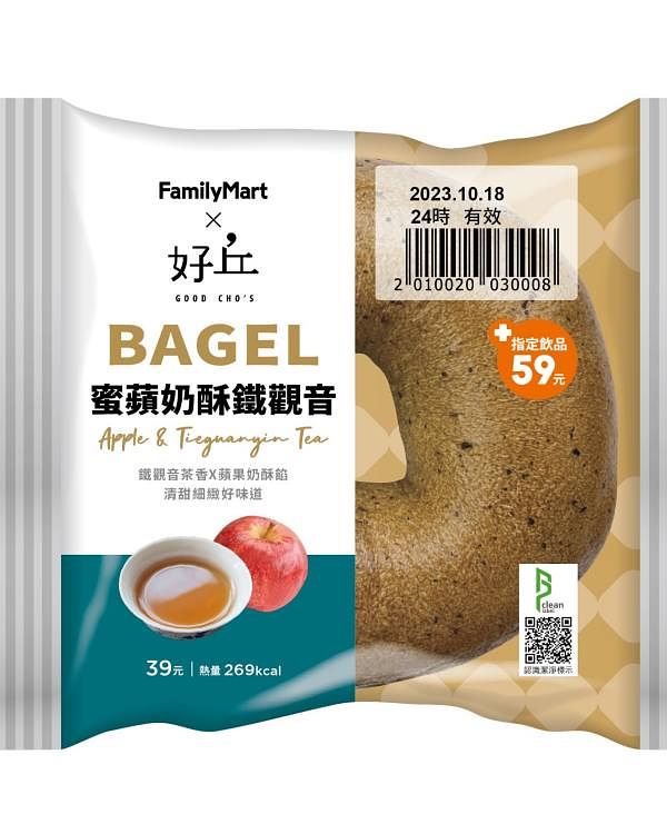 圖片來源:全家 蜜蘋奶酥鐵觀音貝果 NT$39