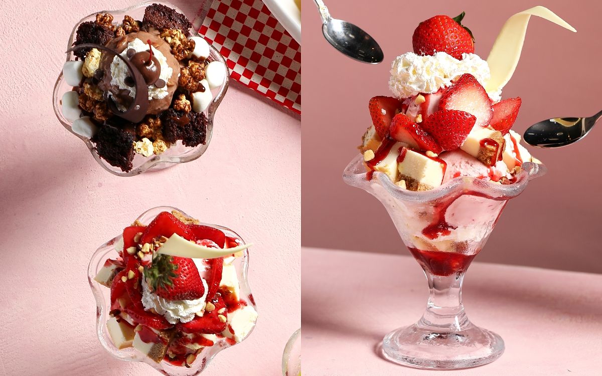 繼双聖代引爆打卡熱潮後,以双聖最為經典的自製冰淇淋所打造的「愛戀巧克力」即將再度秒殺手機記憶體,先運用啾啾巧克力及棉花糖堅果冰淇淋鋪底,放上濃郁布朗尼塊及Q彈棉花糖,灑滿爽脆焦糖爆米花後擠上綿滑鮮奶油,杯頂運用手作巧克力櫻桃綴點而成,每一口都能感受雙重巧克力冰淇淋風味彼此和諧交融,醇厚布朗尼及爆米花則增添口感,是巧克力控絕不可錯過的聖代風味!