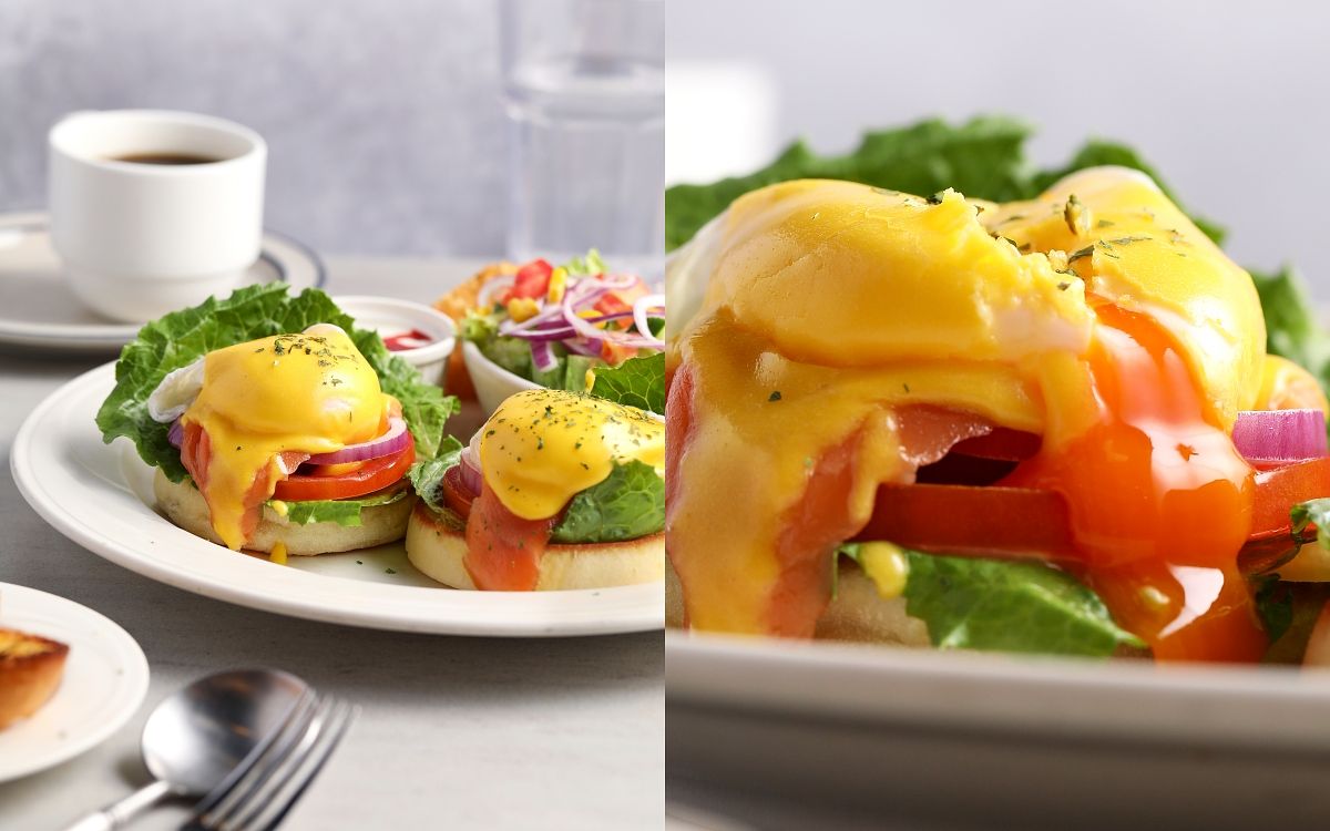 圖片來源:双聖人氣品項班尼迪克蛋將半熟水波蛋置於英式馬芬後淋上特製荷蘭醬,搭配草莓優格及生菜沙拉維持均衡營養,肉品選擇可選擇香氣十足的煙燻鮭魚抑或是碳烤雞肉等多種品項,切開水波蛋後蛋液包覆馬芬上,一口咬下感受多層次味蕾饗宴;法國吐司則將軟綿吐司浸泡於蛋液中,待充分吸附蛋汁後將兩面煎至金黃,外酥內嫩口感搭配炒蛋與薯餅是內行饕客的心頭好!