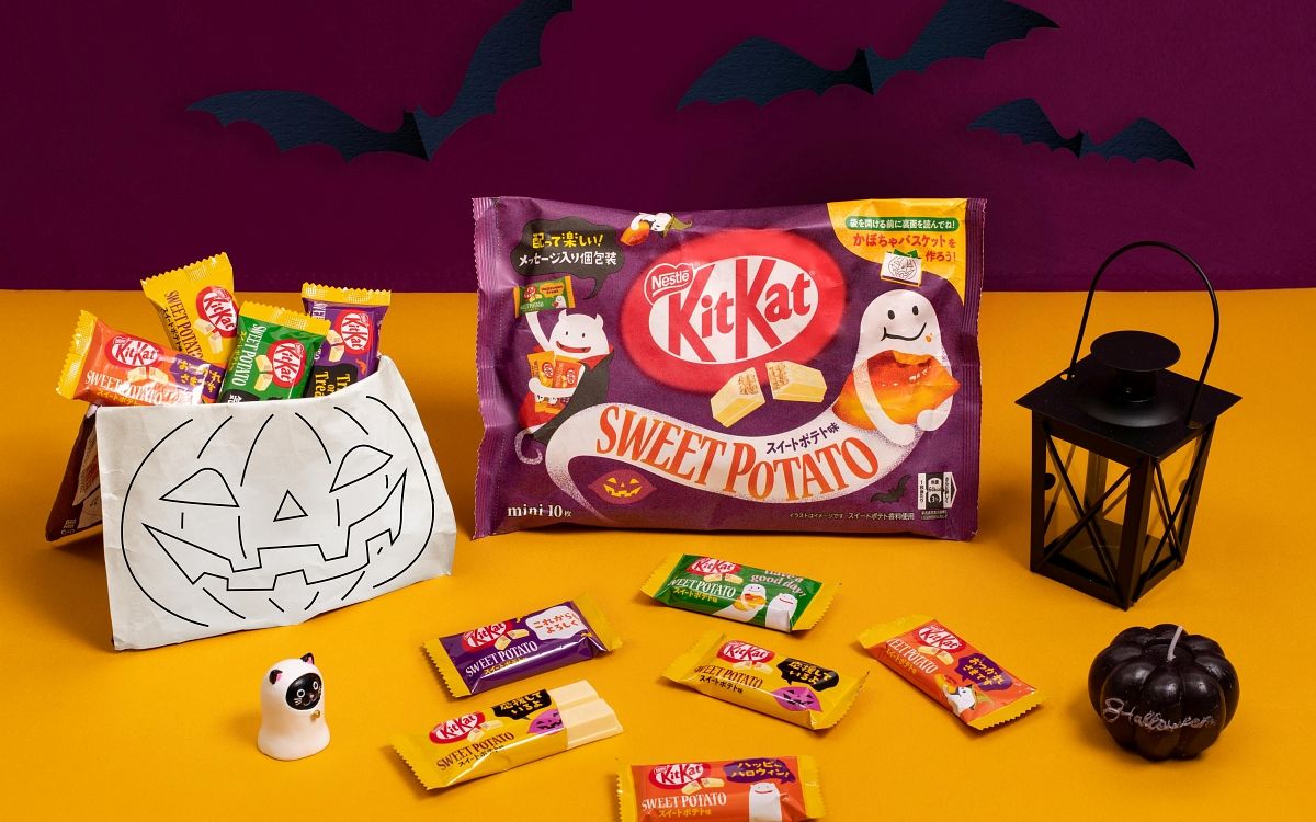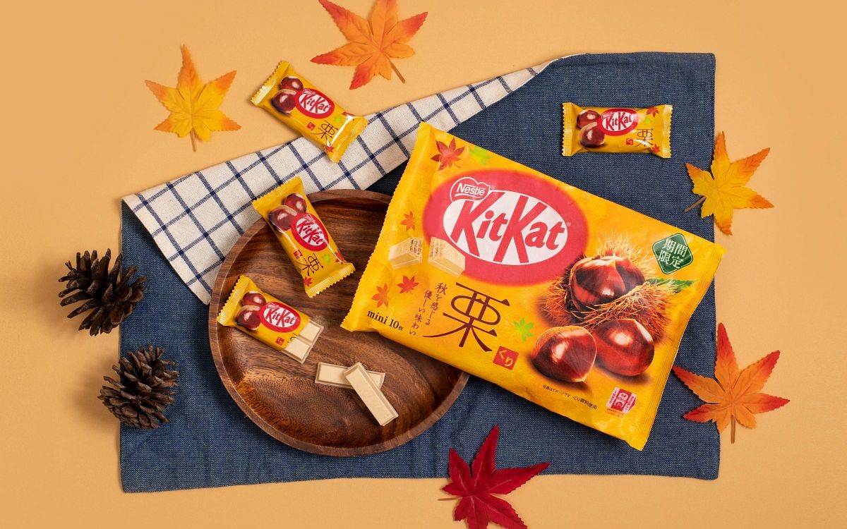 圖片來源:KitKat造型吸睛、內在綿甜的日本萬聖節限定「KitKat番薯威化」,綿密地瓜香氣搭配威化餅乾,爽口滋味,讓人欲罷不能。趣味造型外袋有雙面設計,翻面使用即刻化身南瓜立袋。搭配14款印有可愛鬼鬼造型設計、附上「Trick or Treat」、「萬聖節快樂」等日文應援小語的內包裝,每袋10款隨機搭配,絕對是今年最獨特吸睛的應景小禮。隨著時序入秋,適逢栗子產季,日本KitKat推出期間限定、每年僅一次生產的稀有口味「KitKat甘栗威化」,將栗子的溫潤甜香,完美結合經典酥脆威化,一口咬下即可感受到新鮮直送的濃厚日本秋季氣息。