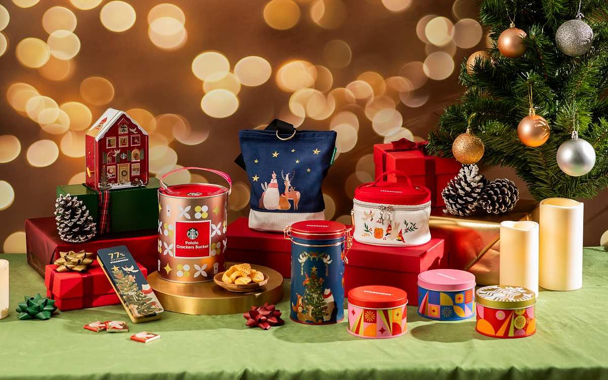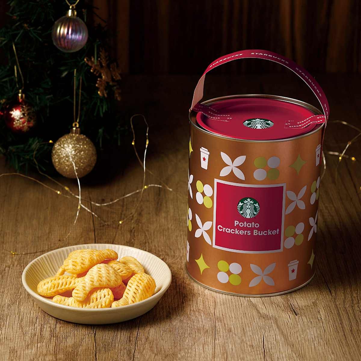 圖片來源:星巴克 耶誕包裝食品部分,新上市「歡慶綜合餅乾」以繽紛幾何設計外包裝呈現慶典氛圍,不同色系的餅乾罐分別盛裝經典咖啡、法式奶香、鹽之花巧克力等3種口味餅乾,皆是相當適合搭配咖啡享用的風味點心。今年節慶歡聚必備就屬「棒薯脆派對桶」,閃耀玫瑰金色餅乾桶搭配著令人心情愉悅的花樣設計,內含新上市香濃開胃的起司蒜香雞風味馬鈴薯脆,棒棒腿造型餅體,是款適合三五好友分享、好吃又好玩的派對點心。