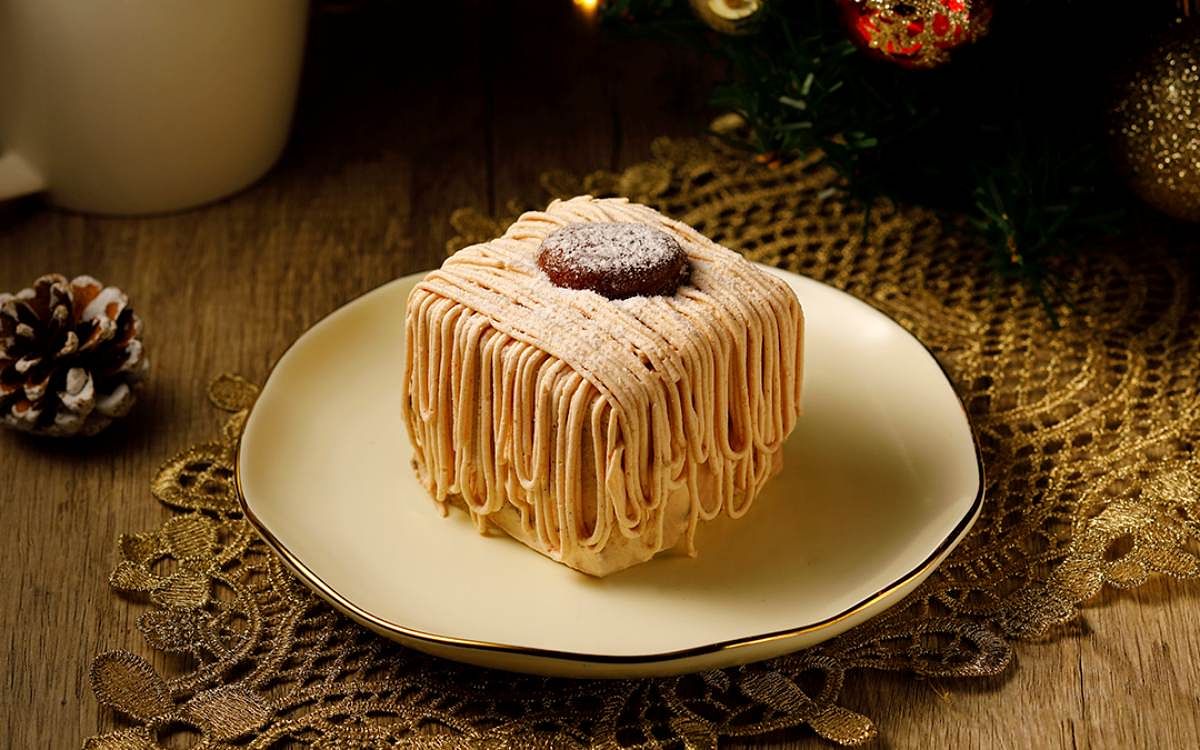 圖片來源:星巴克 耶誕不能缺少的節慶甜點,本次推出「蘭姆葡萄栗子蒙布朗」,以栗子風味為主體,層層栗子戚風中夾入栗子餡與蘭姆葡萄鮮奶油,再加上一層巧克力脆片餅乾,表面再擠上代表蒙布朗的栗子絲線,展現多層次的蛋糕風味,絕對是耶誕必吃甜點。