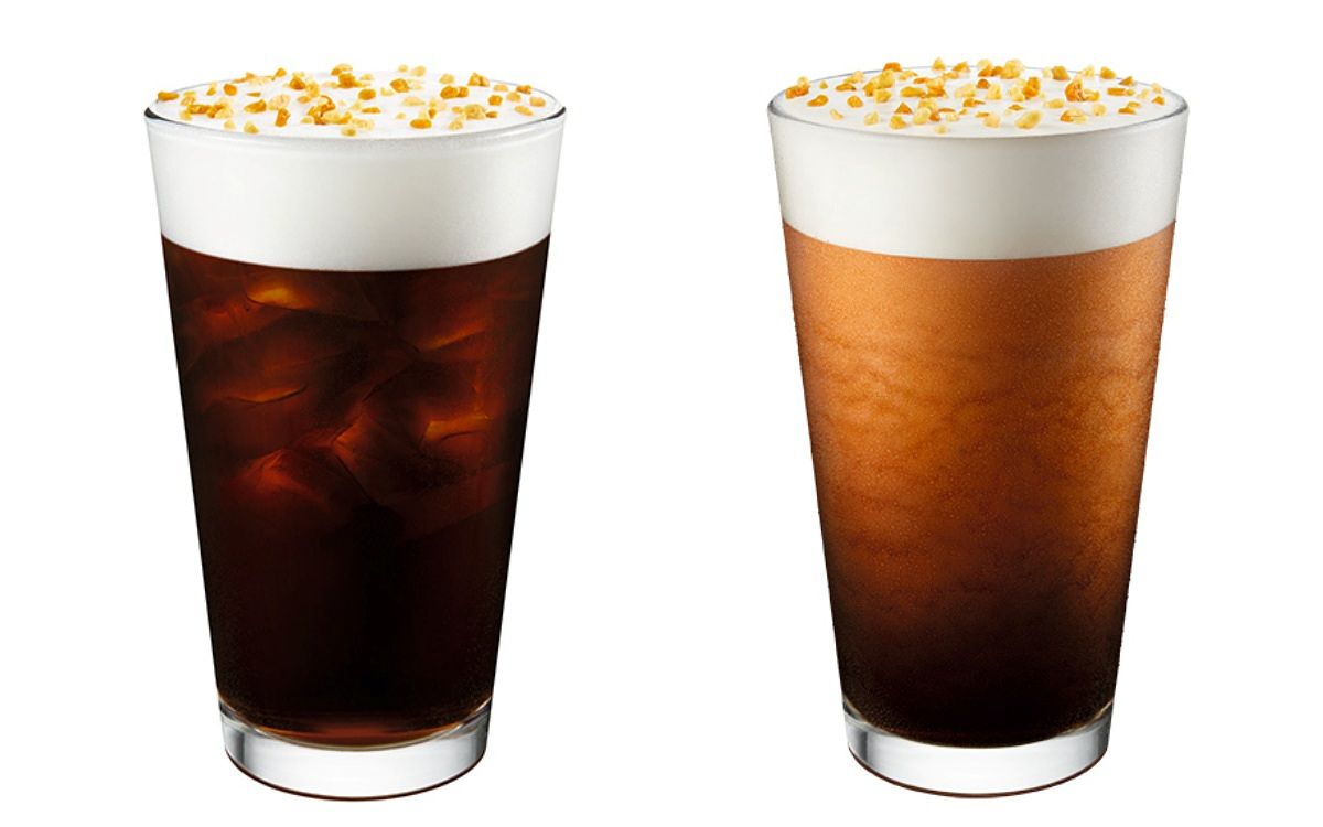 圖片來源:星巴克 太妃系列飲品今年也推出「太妃核果風味冷萃咖啡」、「太妃核果風味氮氣冷萃咖啡」,提供給黑咖啡愛好者不同風味的飲品選項,將冷萃咖啡與氮氣冷萃咖啡佐上香滑太妃核果風味冰奶泡,再撒上滋味香甜的太妃蜜糖碎片,難以抗拒的耶誕滋味,帶來冬季的歡樂氣氛。