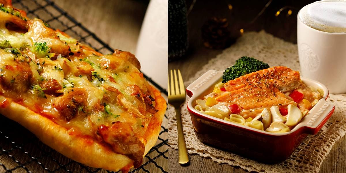 圖片來源:星巴克 耶誕鹹食首推備受顧客喜愛的生義大利麵,新推出「明太子鮭魚生義大利麵」,Q彈麵體的生義大利麵,推出後即受顧客歡迎,本次口味以白醬搭配鹹香明太子的完美比例,使麵體呈現淡淡粉色,再搭配新鮮鮭魚,最後鋪上花椰菜及其他配菜,帶來濃郁豐富的口感。另有「照燒雞肉薄餅」淋上日式照燒醬汁結合雞胸肉和牛蒡絲拌炒,搭配蔬菜平鋪在鬆軟的薄餅上,最後撒上起司絲烘烤後牽絲的薄餅,讓人食指大開,牽絲薄脆口感,忍不住一口接著一口。