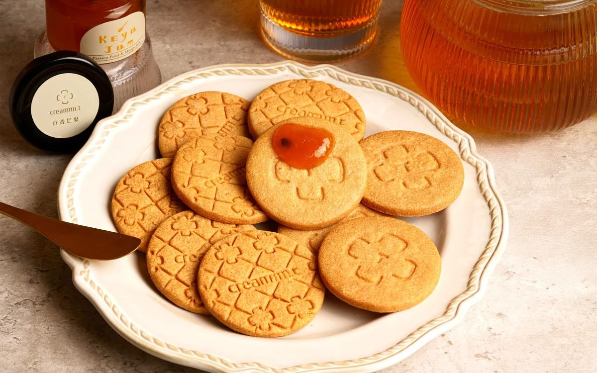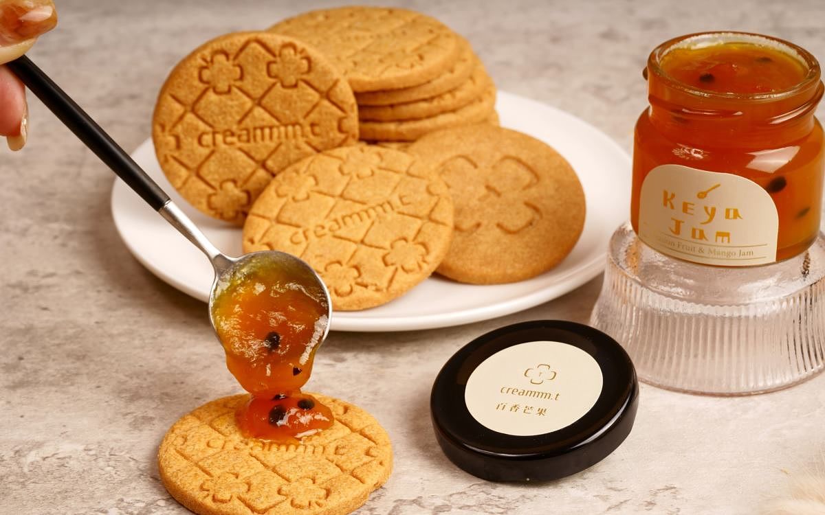 creammm.t奶油壓花薄餅,不同一般坊間奶油餅乾的厚重奶油感,以薄餅的精緻酥脆來表現,聞得到剛剛好的奶油香氣與麥香的極緻交鋒,還可搭配由果醬女王.柯亞親自挑選台灣在地風土水果食材,以富饒的島嶼物產細細熬煉出香氣飽滿、層次豐富的手工果醬;與奶油薄餅超乎想像的的絕美呼應,果醬層次的疊加,其滋味深具和諧;輕抹果醬點綴或老饕級別的推薦吃法,以果醬夾心餅乾呈現,皆令人難以忘懷,一片接著一片,難以停手!如此散發著獨特風味和幸福感,是今年冬季外出野餐、下午茶的Top1選擇,絕對要搶首波購入!