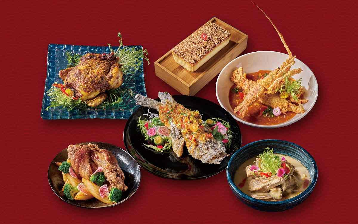 圖片來源:台北福華大飯店 除了經典台灣味,福華人氣西餐廳麗香苑的特色年菜則為年節餐桌帶來不一樣的團圓氛圍。主打的四人份「吉利套餐」菜色包含滑蛋辣椒龍蝦、烤薑黃金雞、金桔檸檬龍虎斑和蒙古炸豬手等,主廚郭志豪特別選用台灣在地養殖的青龍龍蝦和龍虎斑等食材,融合亞洲多國料理概念,堆疊出別出心裁的創新菜色,而針對喜愛西式口味的顧客,主廚特別推薦年年熱賣的單點菜餚「德國豬腳」,酥脆外皮與彈牙肉質,搭配清爽開胃的酸菜口感再升級,是讓除夕圍爐一秒國際化的秘密武器!
