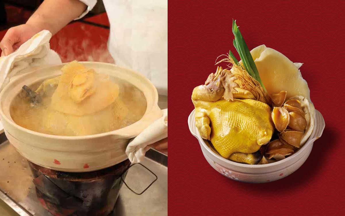 圖片來源:台北福華大飯店 為復刻記憶中縈繞心頭的老味道,今年台菜餐廳「蓬萊邨」主廚陳冠閔特別研製限量30盅的「人參花膠魚翅極品鮑魚燉布袋雞湯」,陳冠閔表示,布袋雞是經典手路台菜,需以高超刀工不傷及外皮,精心去除雞骨,再填入滿滿餡料,使全雞宛如布袋一般容納食材精華,再以炭火慢煨熟透至入口即化,此道料理從準備到製作需耗費5天以上,工序講究且繁雜,是台北福華首次推出的匠心之作。