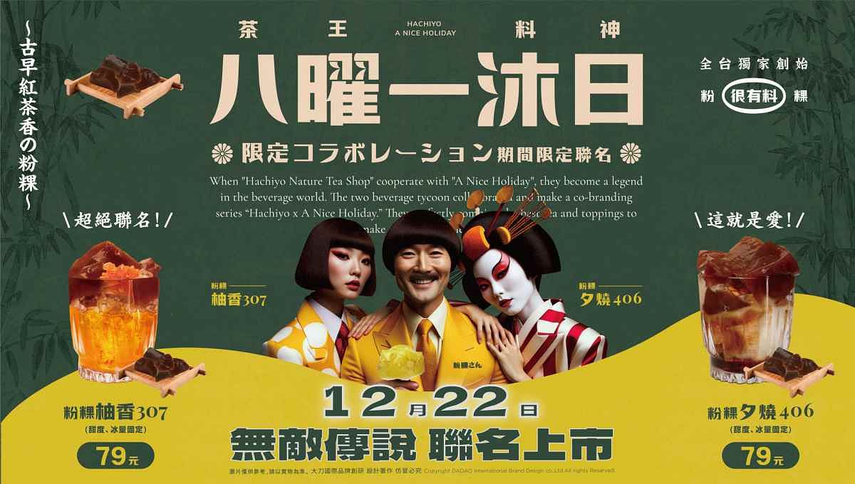 「粉粿舞伎406奶茶」以八曜獨家秘製發酵精選金萱茶葉,帶有花果香氣的爽口單品茶結合香醇焙煎厚奶,再配上一沐日的Q彈紅茶粉粿!一款是酸爽柚香,一款則是帶有花果香氣的紅茶,兩款商品將會在12/22正式發售,無論是在八曜和茶或是一沐日店上都買得到,而且還會有聯名杯身喔!