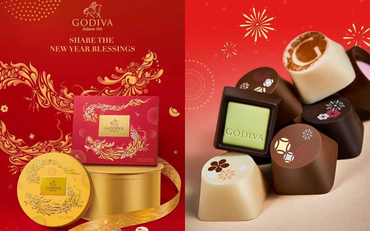 比利時皇室御用巧克力品牌GODIVA 2024新年限定巧克力禮盒,融入十二生肖中象徵力量與智慧的「龍」,結合新春祝賀色彩與節慶元素設計,推出9款氣勢非凡的奢華禮盒。2024新年限定巧克力包括三款立方夾心巧克力:百香果焦糖白巧克力、榛子牛奶巧克力、焦糖黑巧克力,以及兩款片裝巧克力口味:草莓黑巧克力與杏仁牛奶巧克力。