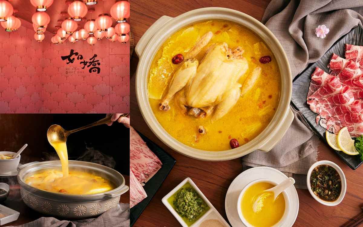 「如嬌花膠雞鍋物」以香港常見的經典花膠雞鍋底為靈感,將珍稀的「花膠」入饌,並融入在地食材推出香醇濃郁的「黃金花膠雞湯鍋」,以一斤要價上萬的高級野生鱸魚花膠入菜,選用在阿里山山腳下放牧飼養的「玉米雞」、嚴選帶骨金華火腿與北海道干貝等高級食材歷時三天慢工熬製成,搭配鮮活海鮮、手工鍋料以及日本A5和牛等精選食材,滿足頂級饕客們的味蕾,更是受到女性歡迎。