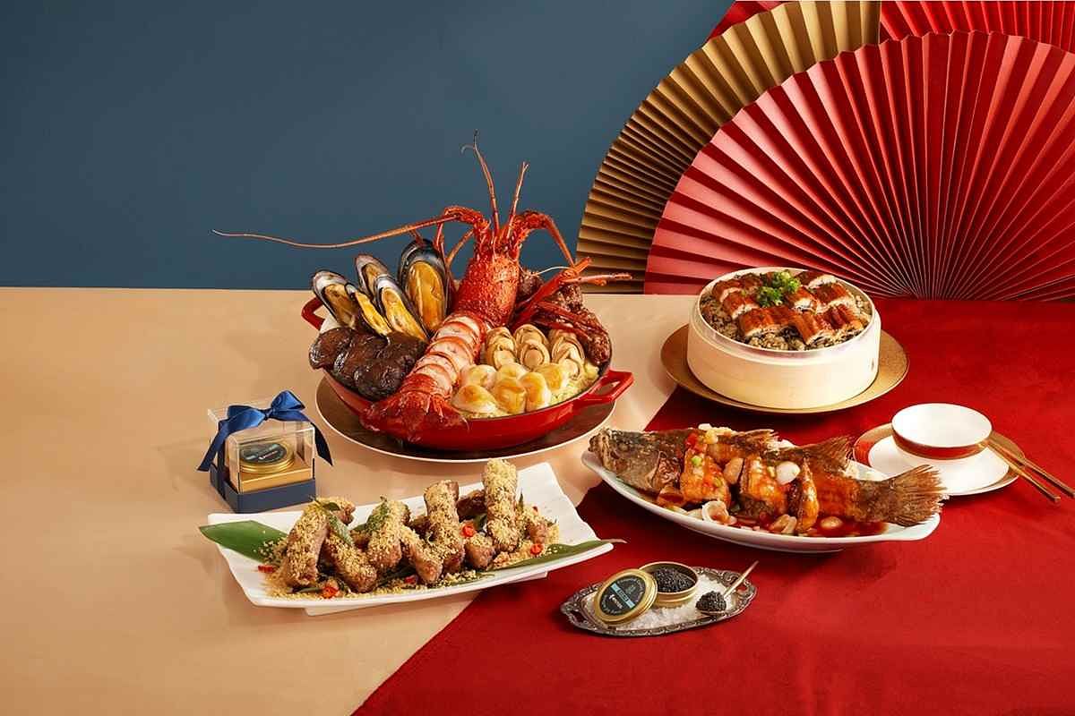 台北晶華酒店端出多款五星年菜選項,由國際級餐飲評鑑組織OAD評選2023年台灣最佳粵菜餐廳《晶華軒》三菜一湯一甜品的「龍蝦鮑魚粵式龍門宴」套餐菜式豐富,包含粵式小品集:蜜汁烤叉燒、蔥麻和牛舌、花膠千層峰、翡翠玉帶子、拾香海參絲、欖菜鮮冬筍,老火鮑魚燉全雞、上湯龍蝦炆伊麵、魚躍龍門煎白鯧、燕窩薑汁蛋白塔,組合價十分超值!