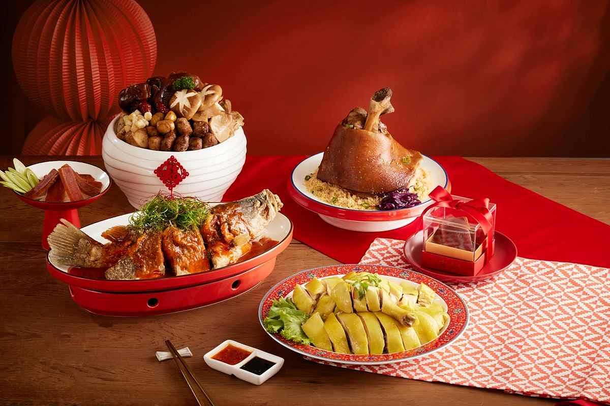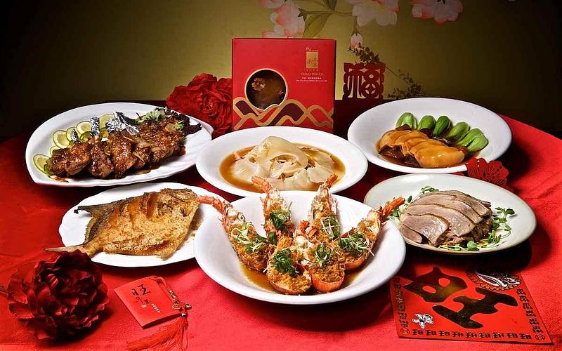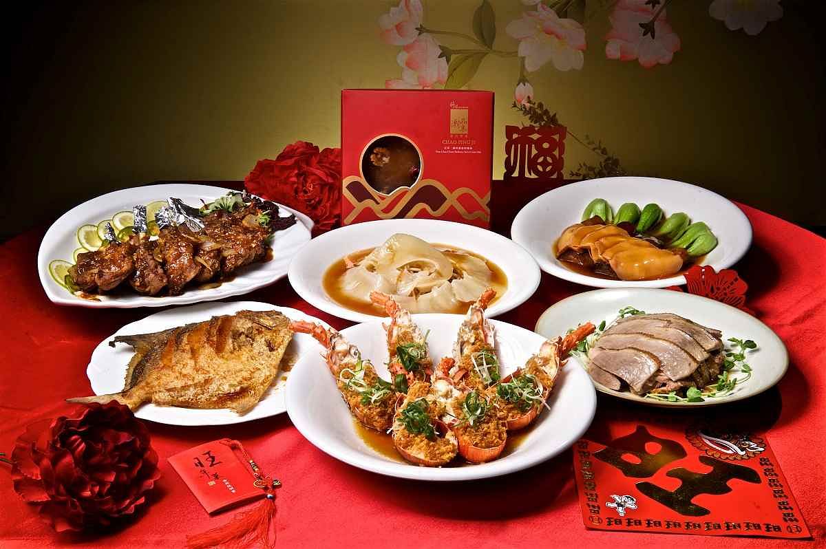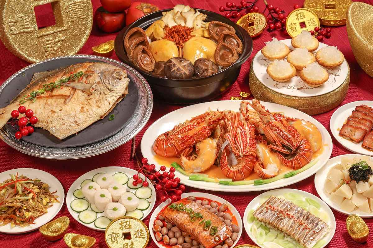 《潮品集》潮州料理餐廳,擁有飯店五星菜色口碑、選擇多元,今年首推「旺年菜鴻運組」包含《潮品集》經典的「潮州滷鵝拼」、「紅燒燴排翅」、「蒜香蒸龍蝦」、「海參炆鮑片」、「干煎大銀鯧」、「蜜椒羊小排」等6道精選潮式佳餚,再贈手工「桂圓核桃年糕」,欲搶攻小家庭客群的6人桌菜。另有10人闔家歡聚「龍鳳呈祥團圓桌菜」。