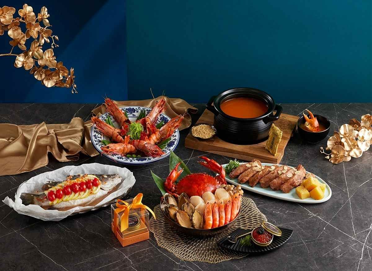 林口亞昕福朋喜來登酒店聚味軒中餐廳,以其融合各式菜系精髓的深厚底蘊,精心規劃「昕春納福」年菜外帶組合,規劃為6人的適中份量,同時也推出人氣單品,每道菜色都富含應景吉祥寓意,包含「聚味迎春福滿門」精緻前菜、象徵綿延長壽的「松露肝油焗虎蝦」、福壽雙全「花膠鮑煨聚寶盆」、年年有魚「黔酸糟辣游水鮮」、吉祥安康的「窯燒湖塘荷葉雞」、以及財源廣進、荷包飽滿的「爐烤蕈蔬豚腱骨」和圓滿如意的「桂釀八寶蒸芋泥」,精選海陸食材搭配各式烹調手法,一次體驗不同絕妙風味的佳餚美饌組合。