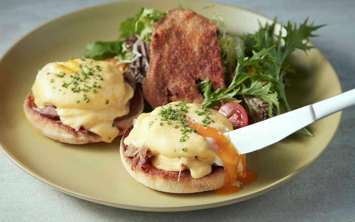 圖片來源:寒居酒店又或是「油封鴨腿班尼迪克蛋、綜合沙拉」選用歷經香料醃製、低溫慢烤24小時的宜蘭櫻桃鴨腿入鍋煎至表皮酥香,扎實馬芬搭配柔嫩水波蛋、酸香濃滑荷蘭醬及鹹香油封鴨腿一起享用,讓經典美式餐點洋溢法式優雅。