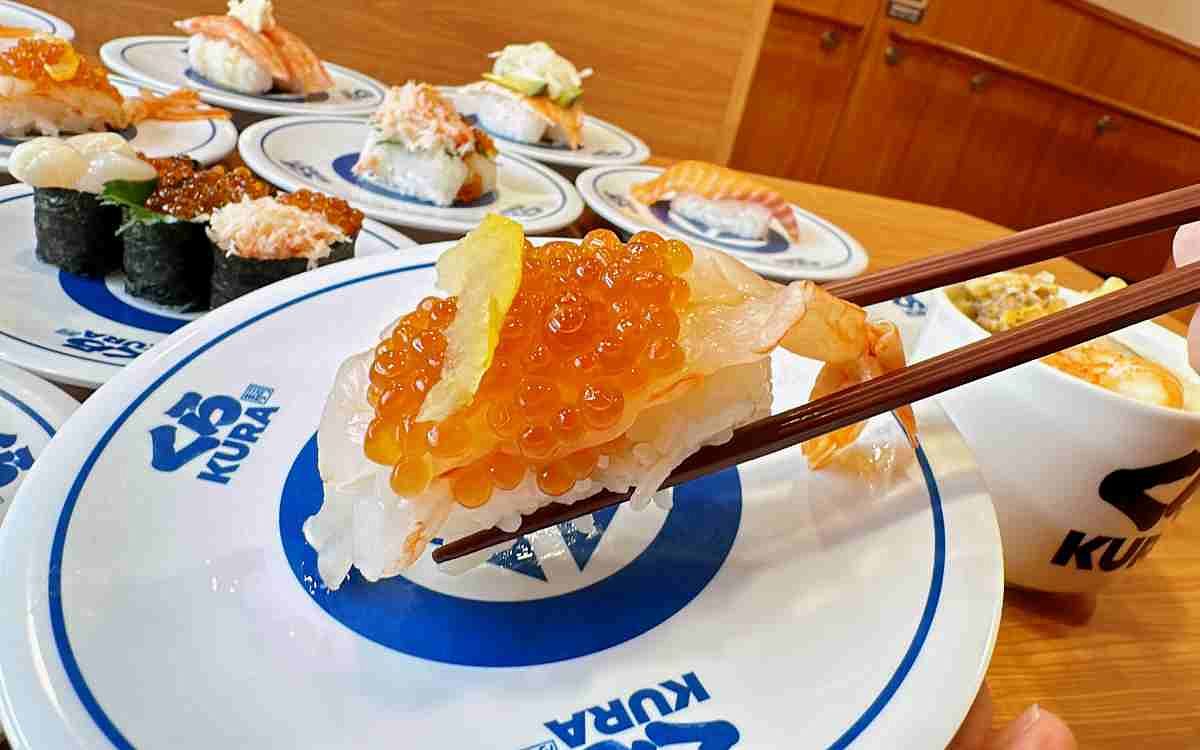 圖片來源:藏壽司 柚香鮭魚卵大生鮮蝦(一貫) NT 80