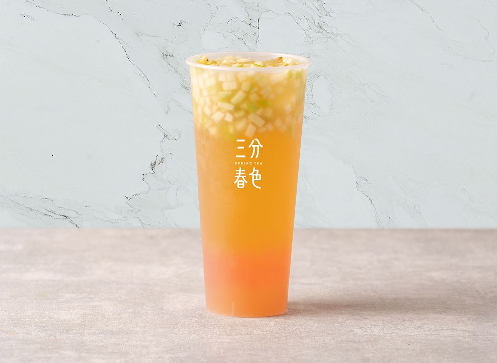 南部知名連鎖手搖飲「三分春色」推出了四款青蘋果新品,分別是茉莉花綠茶香氣帶出的「青蘋果朵朵」、可爾必思酸甜口感的「青蘋果可爾必思」、果香與茶味恰到好處的「青蘋果粒綠茶」以及讓茶控眼睛為之一亮的「青蘋果粒紅茶」。