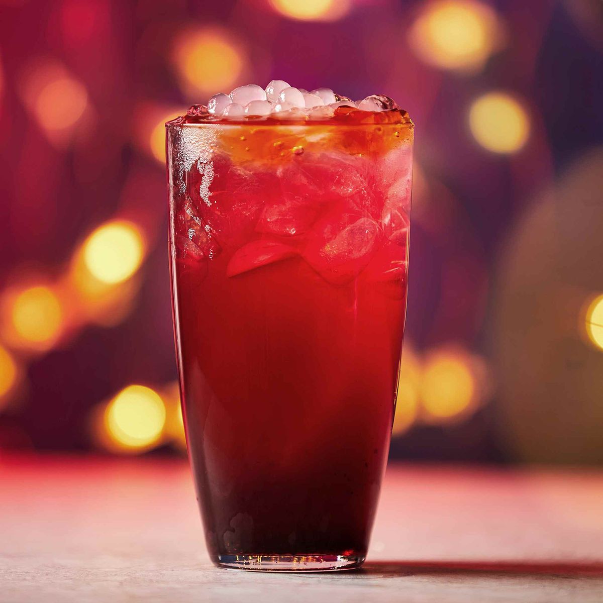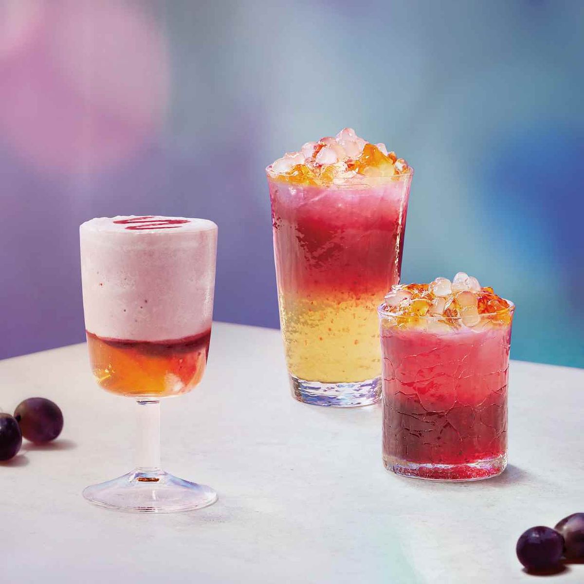 以巨峰葡萄搭配蔓越莓汁,雙果茶的巧妙搭配交織,再加入脆啵啵球和綠茶凍雙配料,豐富層次讓人喝過就著迷。