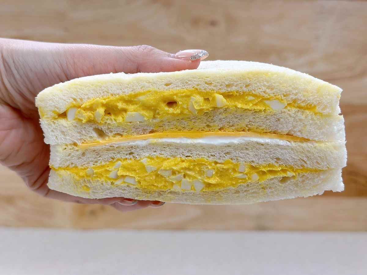 這款起司芥末蛋沙拉三明治分量真的超有誠意!開袋的瞬間就被滿滿的爆餡蛋沙拉塗醬驚豔,不僅豐厚,而且吐司的每一處都有塗抹到,吃到的每一口都不會有只吃到吐司的空虛感!微微嗆辣的芥末風味讓整體增添了清爽,中間的鹹香起司片讓口感更佳柔滑,吃完一整個超級滿足,但完全不會膩唷,大推!