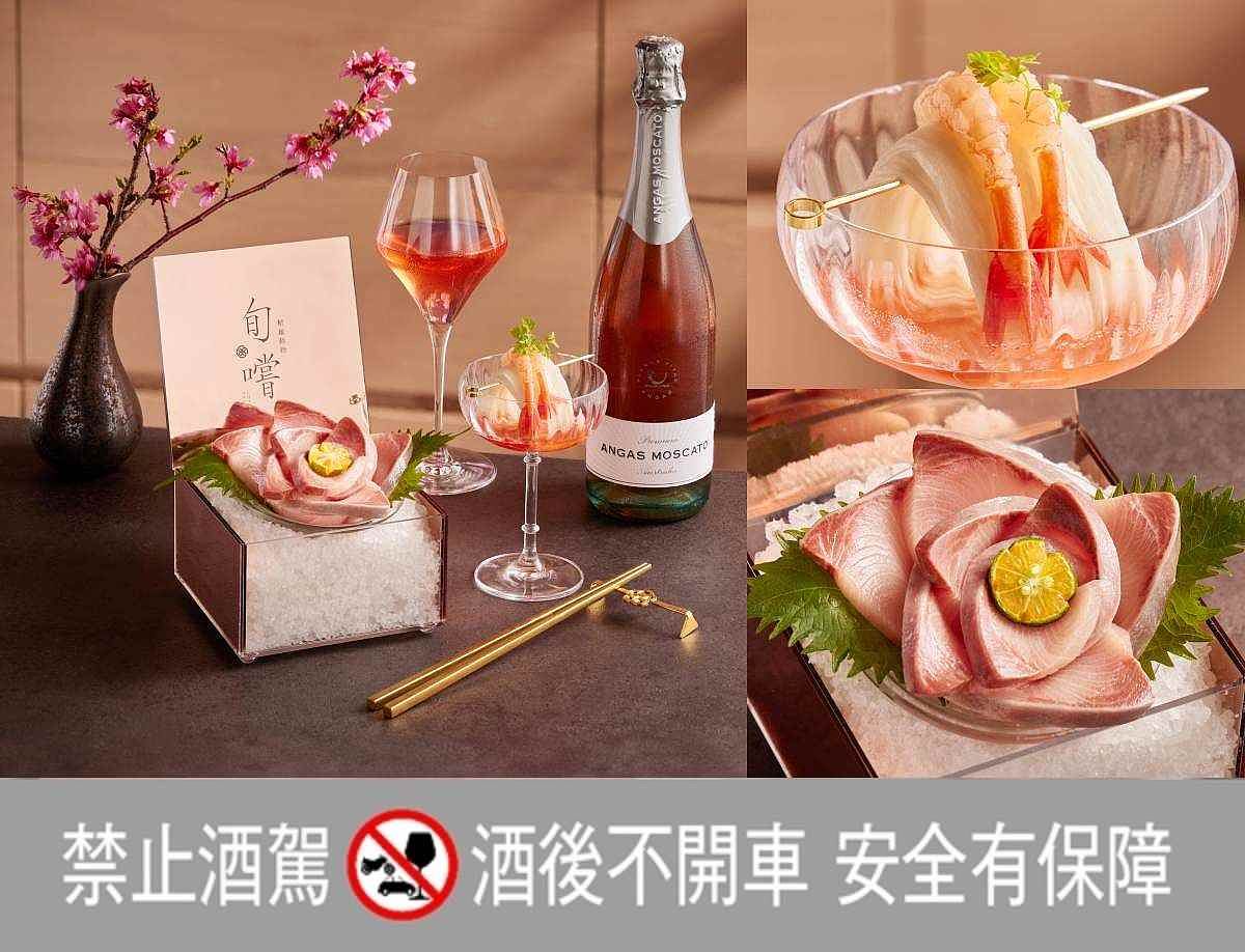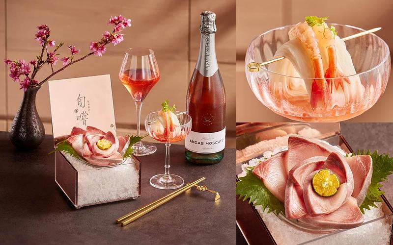 旬嚐推出「春旬慶典。春漾套餐」上市系列活動,提供多款春季限定單品。開胃小品主廚推薦菜-甜蝦梅酒山藥細麵,以日本職人手法將山藥以細麵呈現,搭配新鮮甜蝦佐上日本choya梅酒調製醬汁,口感清爽、層次豐富。逸品則有每日限量和牛刈包,以澳洲純血和牛作為內餡,鮮嫩口感搭配濃郁醬汁必定會讓饕客們愛不釋口。順應春季時令,海鮮珠寶盒增加多人套餐限定加購品-花旬鰤魚珠寶盒(加價購$480),來自日本海域,職人御用頂級食材,其肉質細嫩甘甜,油脂分布均勻,擺盤以花瓣方式呈現在璀璨的珠寶盒內,無論是原味品嚐或是搭配特調醬汁,皆能體現出鰤魚不同的美味樣貌。若想來點微醺感,佐餐酒可選擇加購花香中帶有荔枝及麝香,輕淡爽口、尾韻甜美的粉紅氣泡酒(加購價$999),品味春日的氛圍。