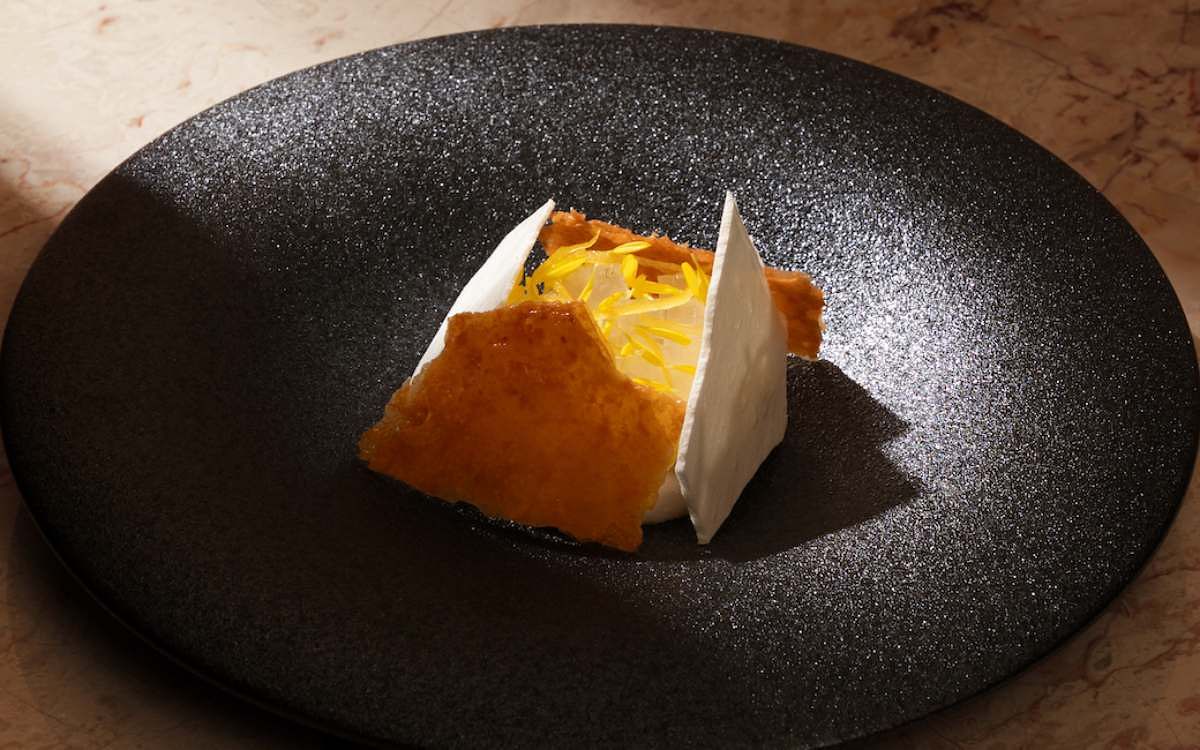 檸檬軟冰糕 白巧克力甘納許/糖漬冬瓜/杏仁脆片/蛋白餅 $320